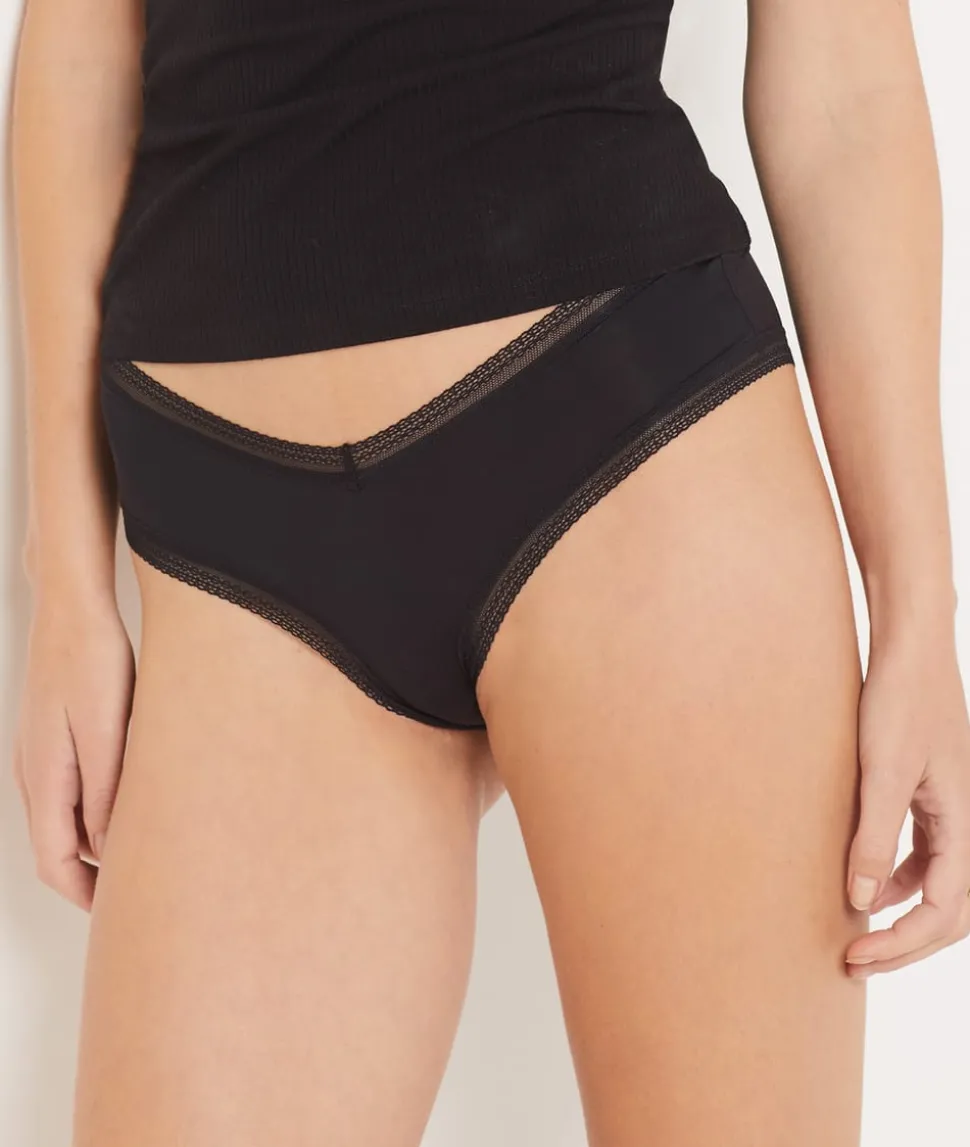 Braguita culotte en V de microfibra y encaje