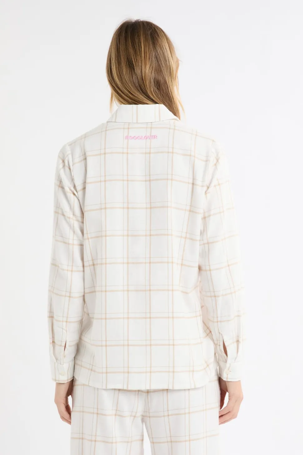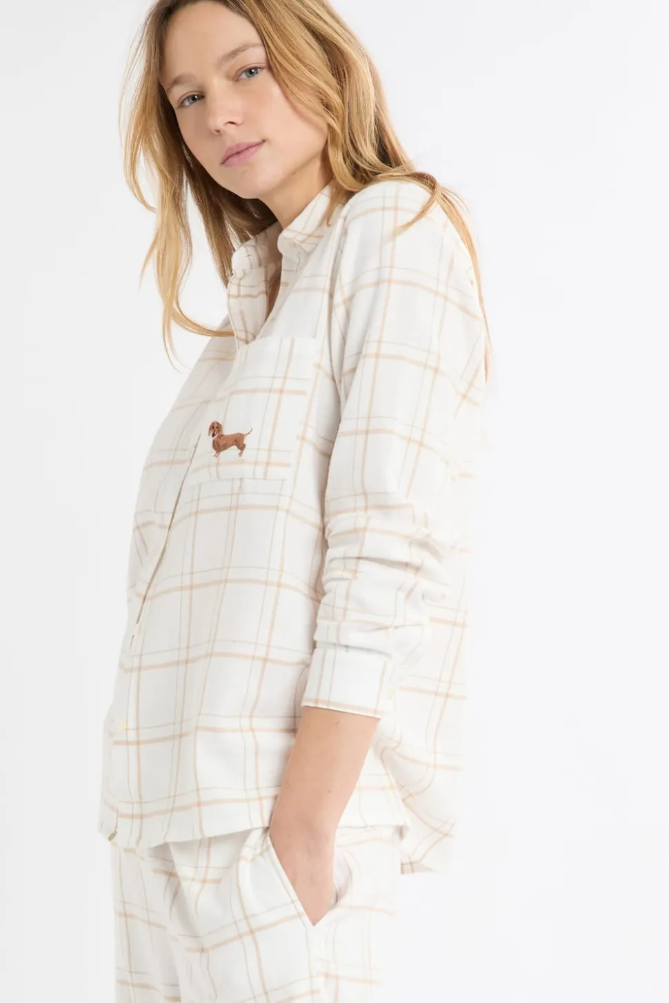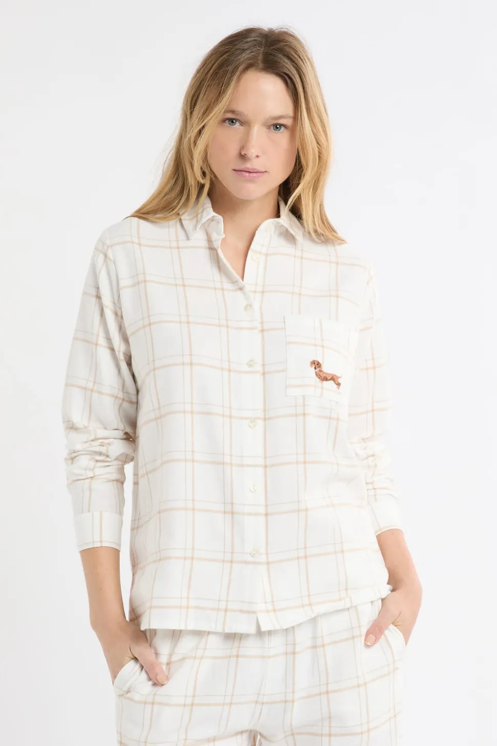 Camisa de pijama a cuadros con estampado de perros en algodón
