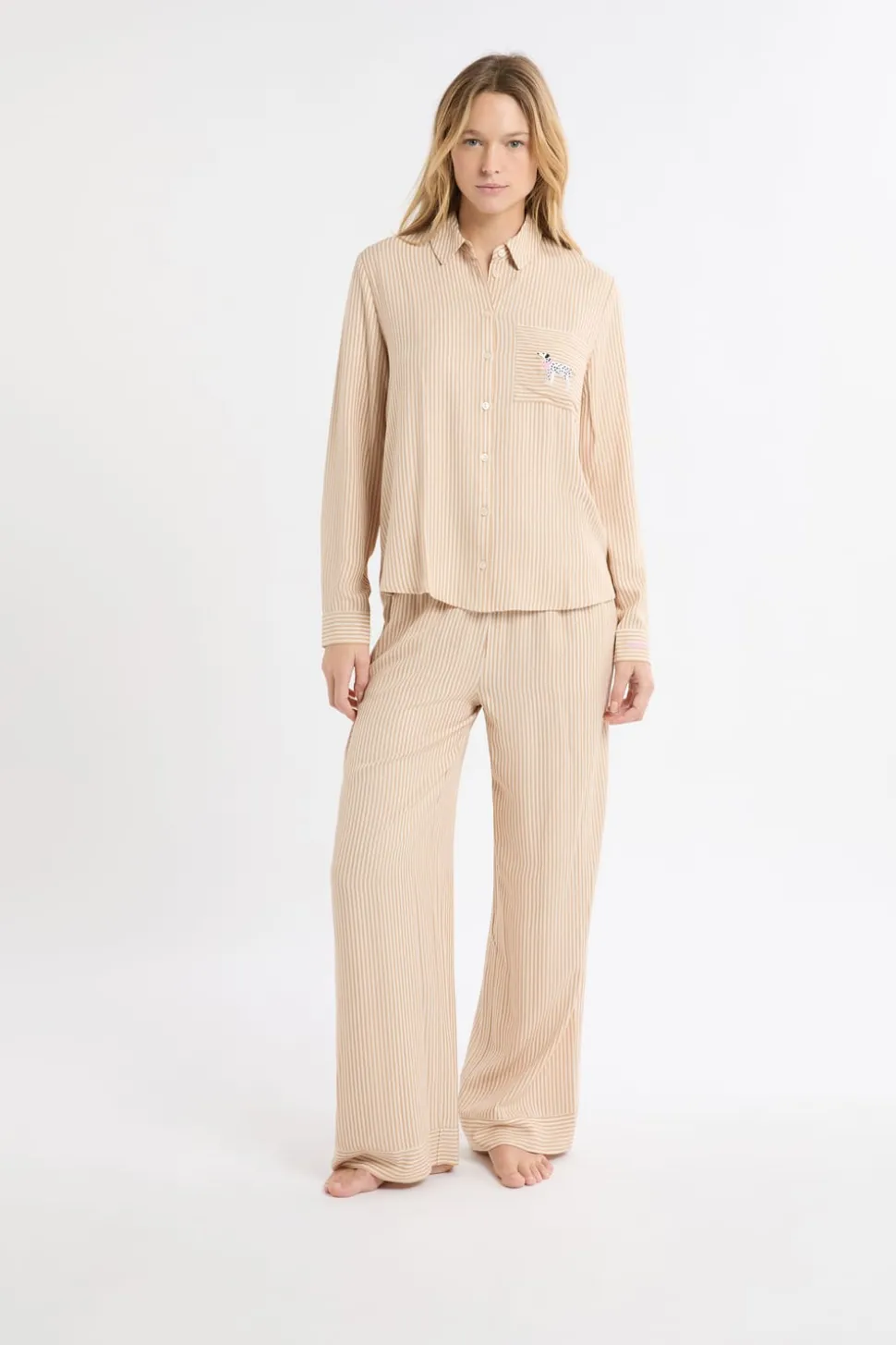 Camisa de pijama a rayas con estampado de perros