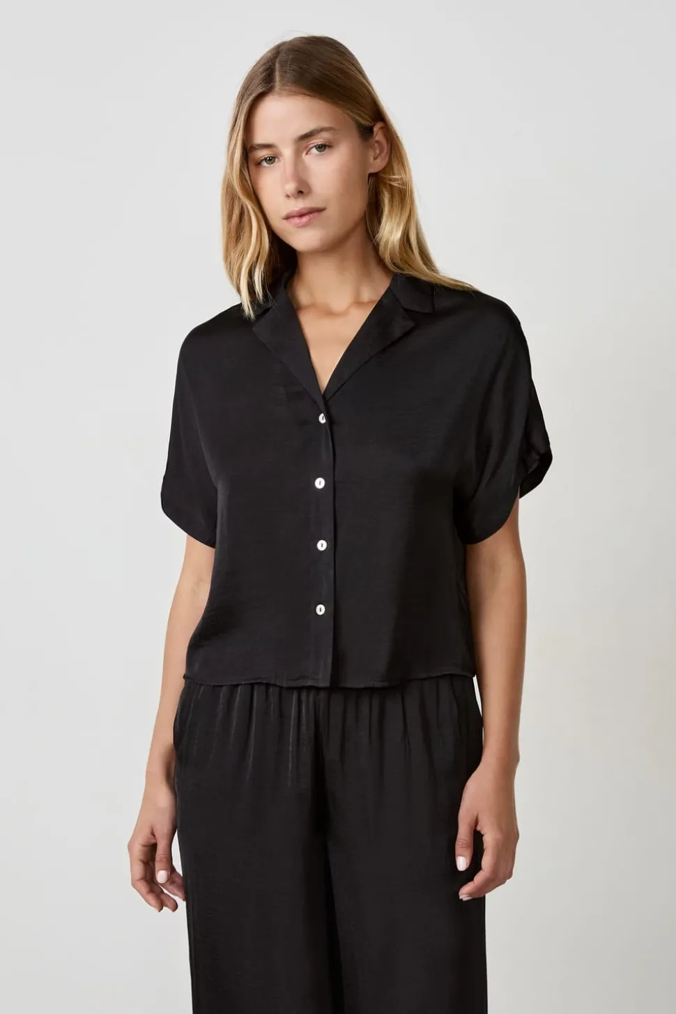 Camisa de satén de manga corta