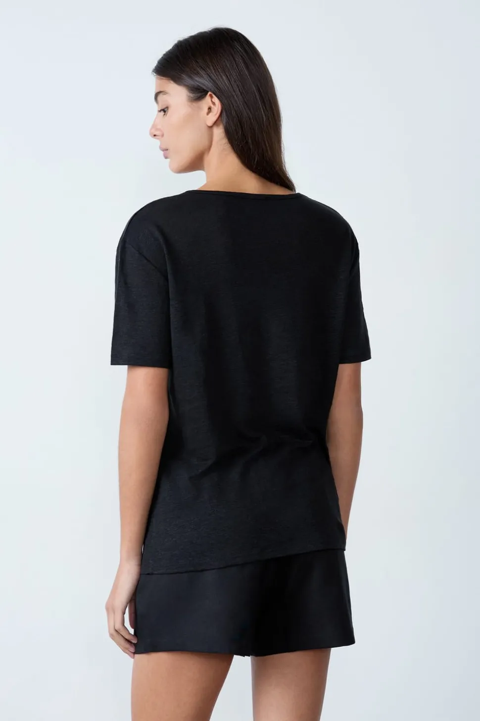 Camiseta de lino con cuello en V