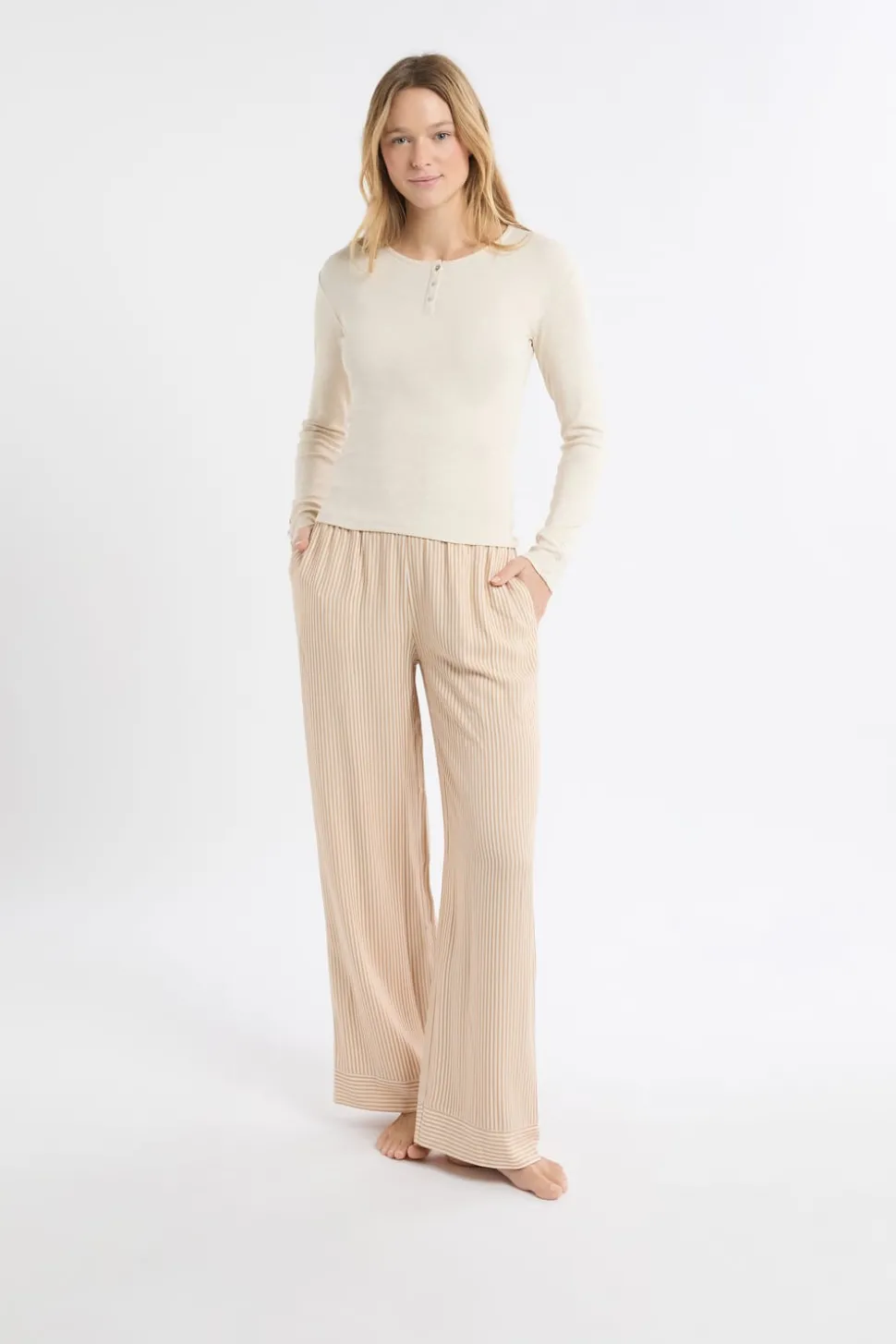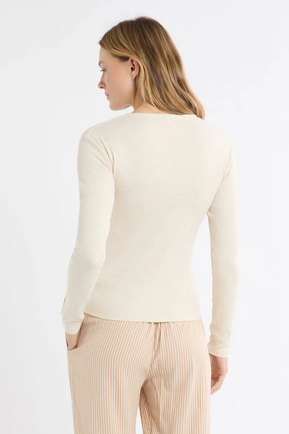Camiseta de manga larga de algodón con botones