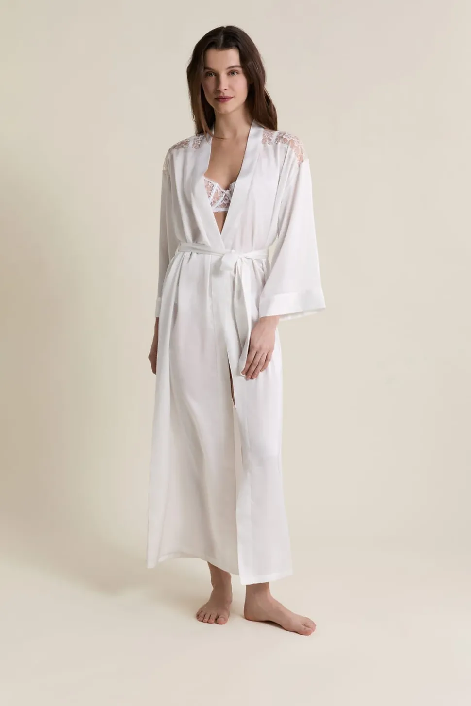Déshabillé long satiné avec ceinture