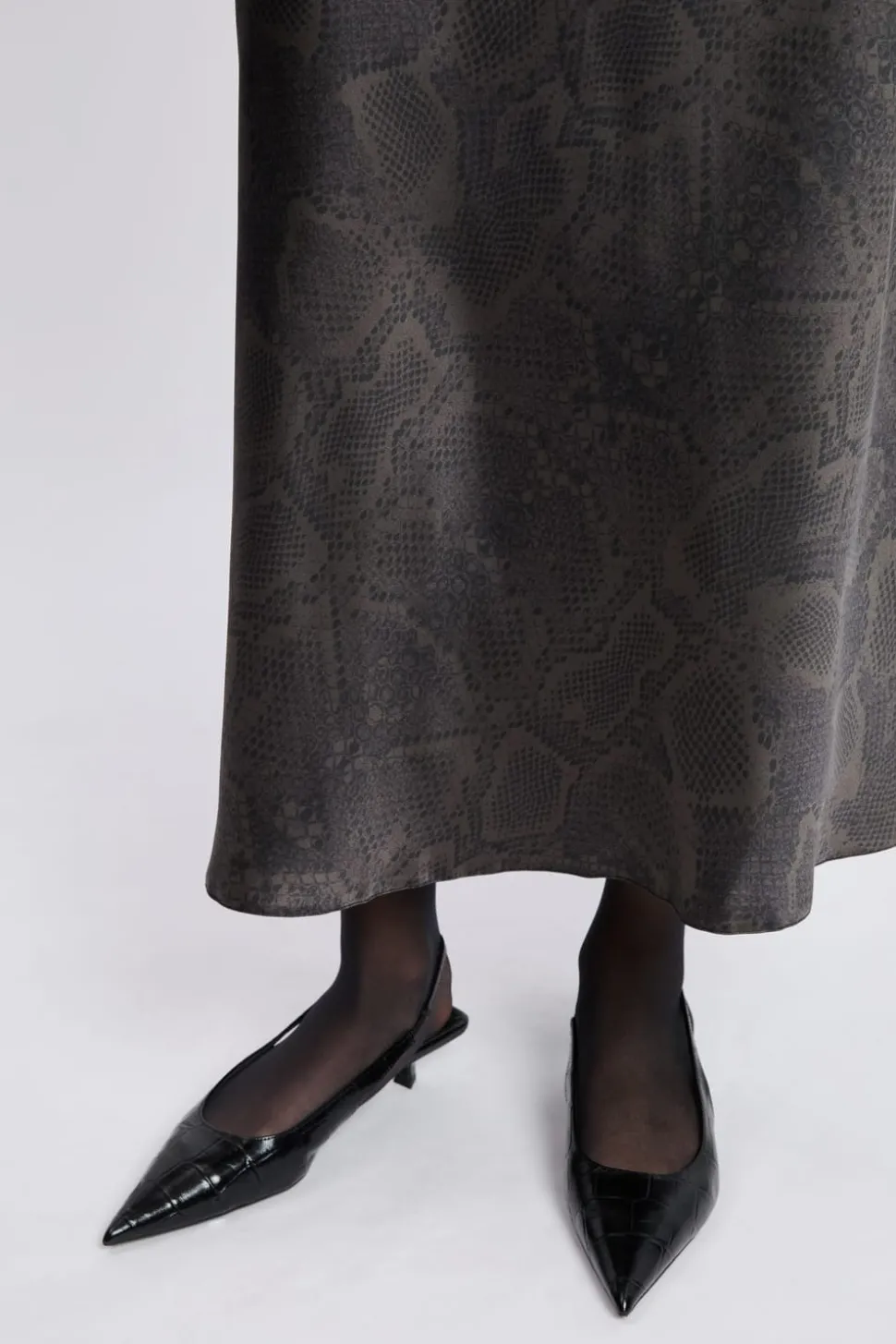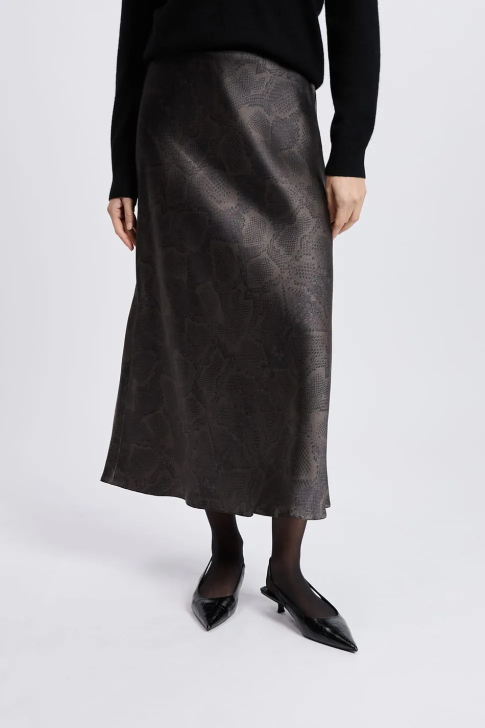 Jupe longue effet satiné à imprimé serpent