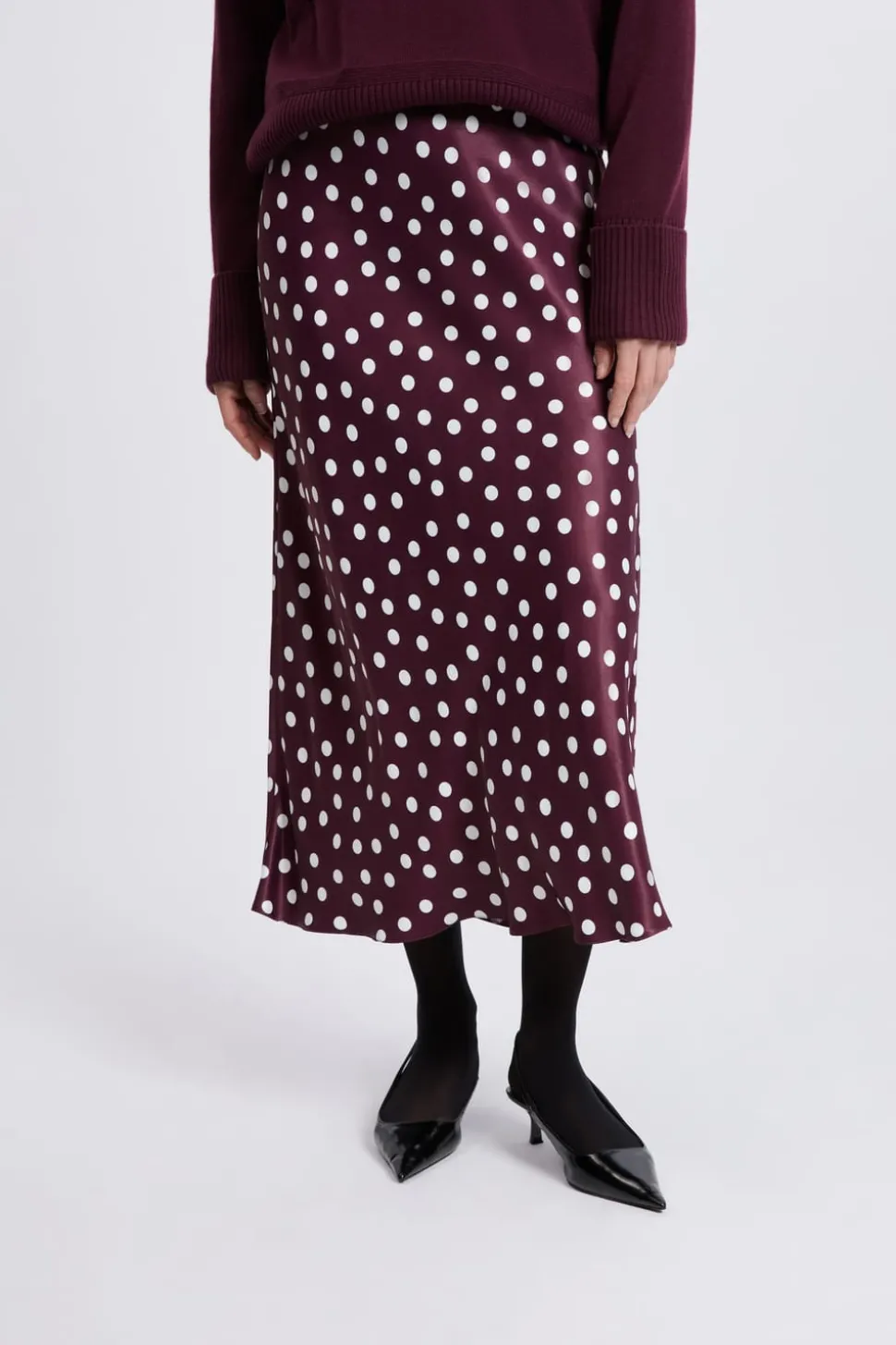 Jupe longue satinée à pois