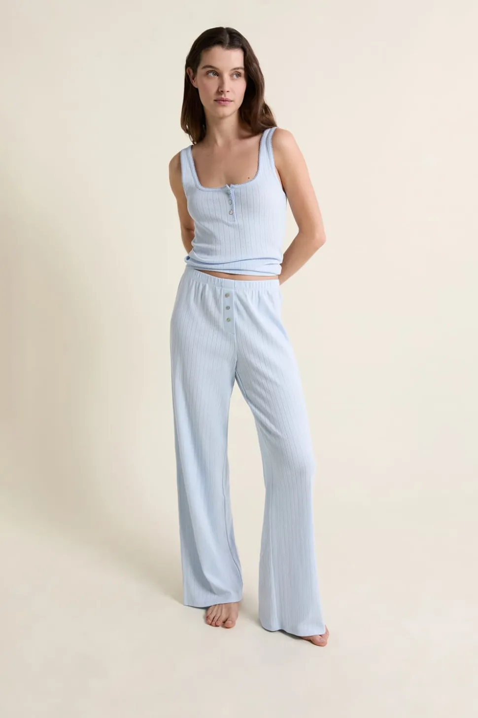 Pantalon de pyjama en coton en pointelle