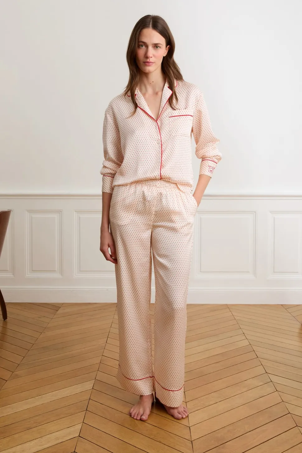 Pantalones de pijama de satén con lunares