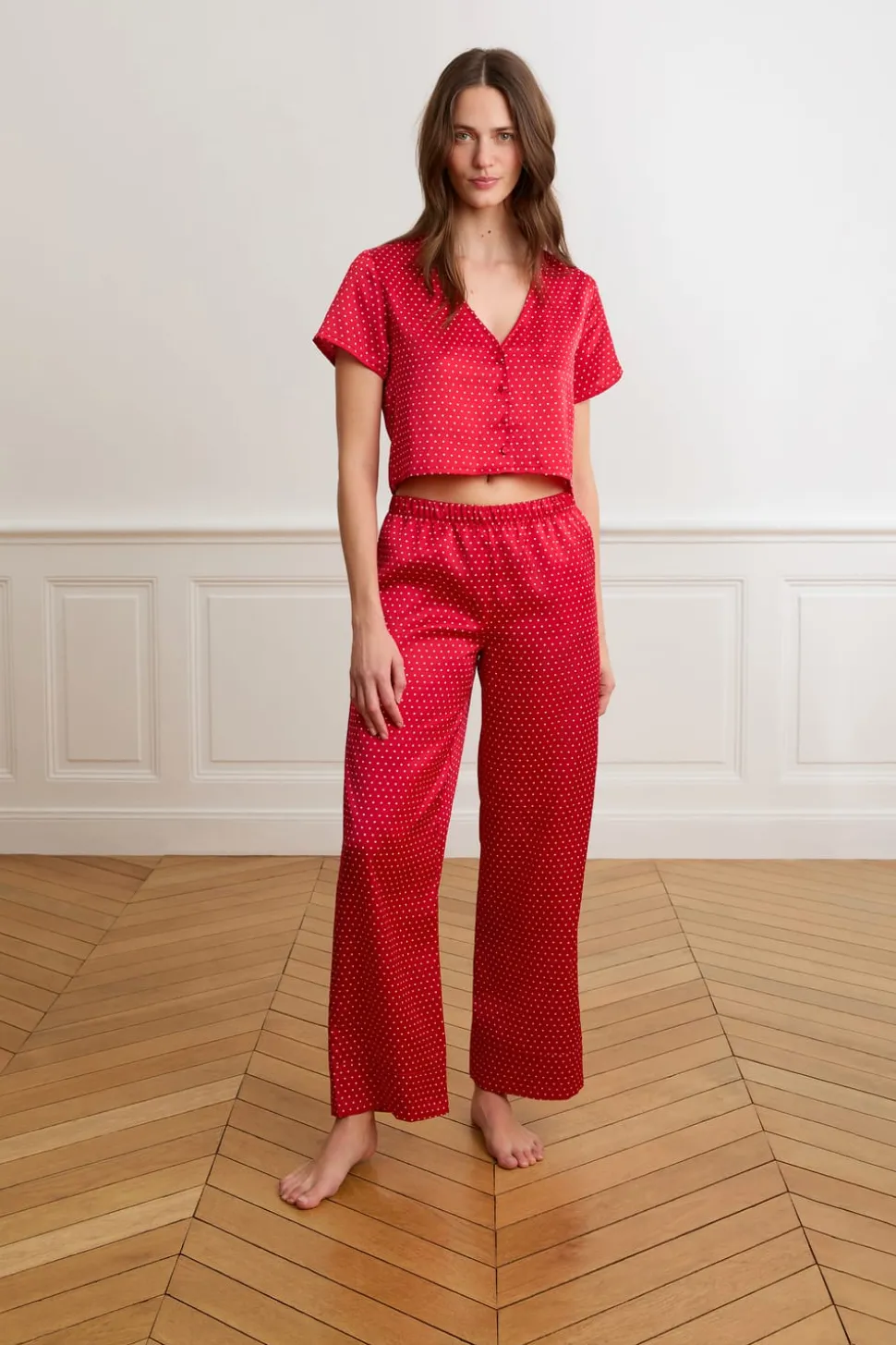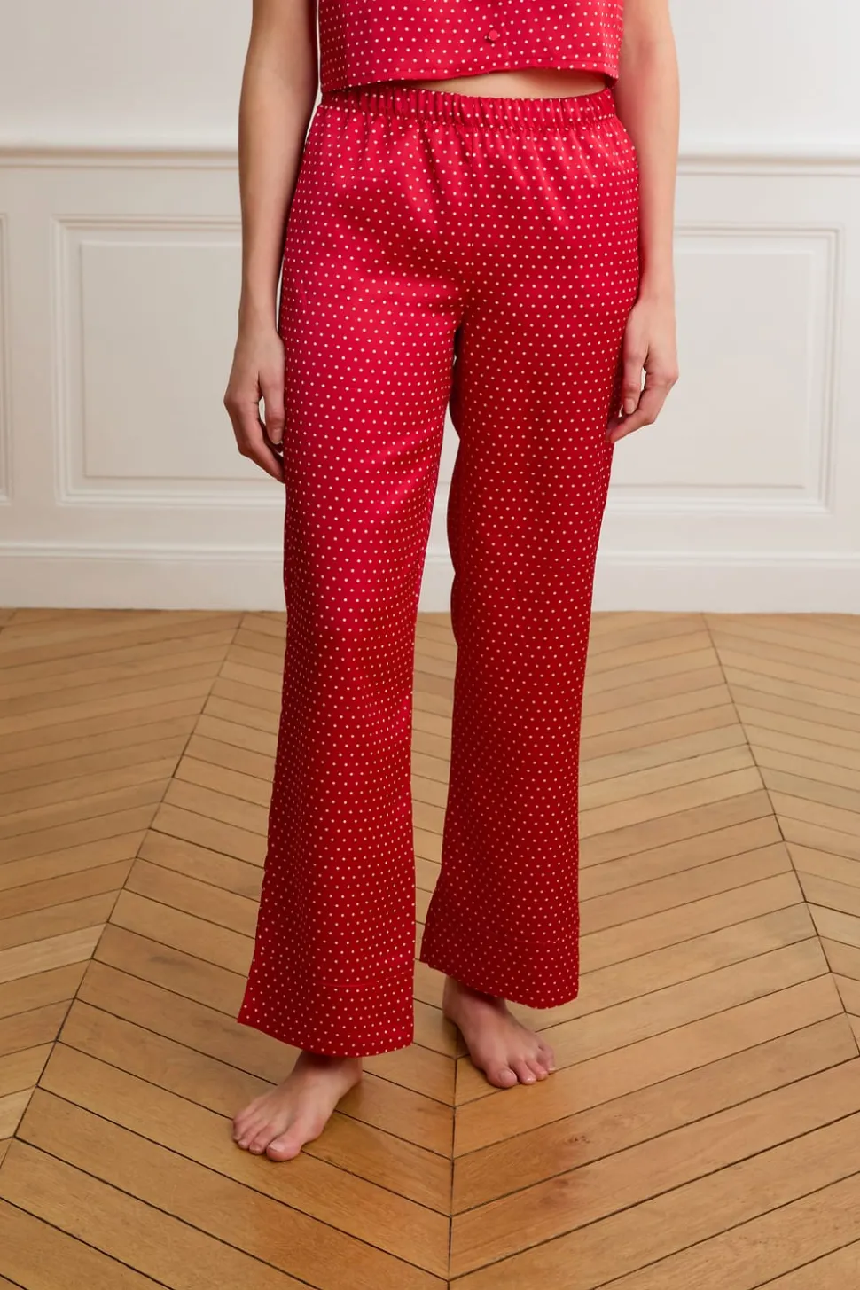 Pantalones de pijama de satén con lunares