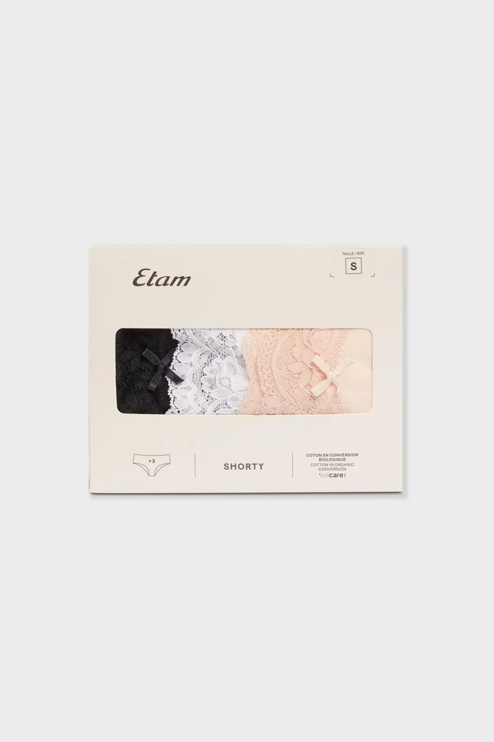 Set de 3 braguitas culotte de algodón y encaje