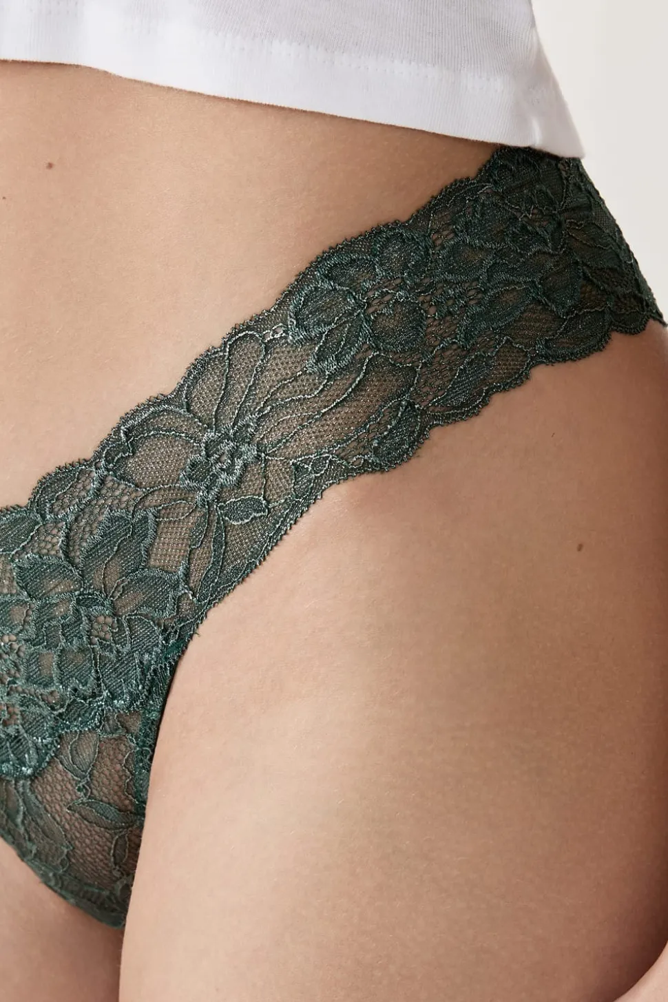 Tanga de encaje tejido brillante
