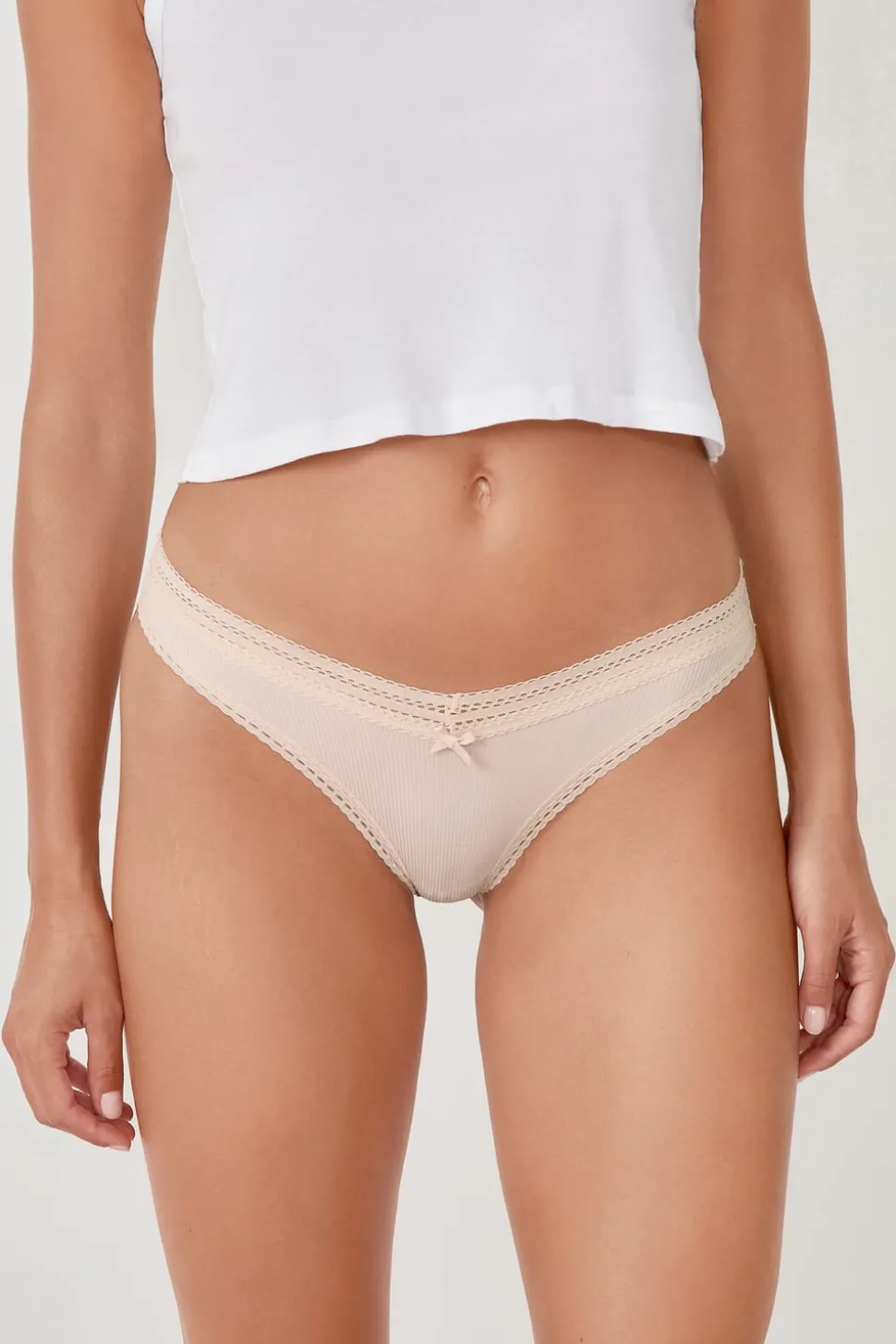 Tanga en V de microfibra y encaje