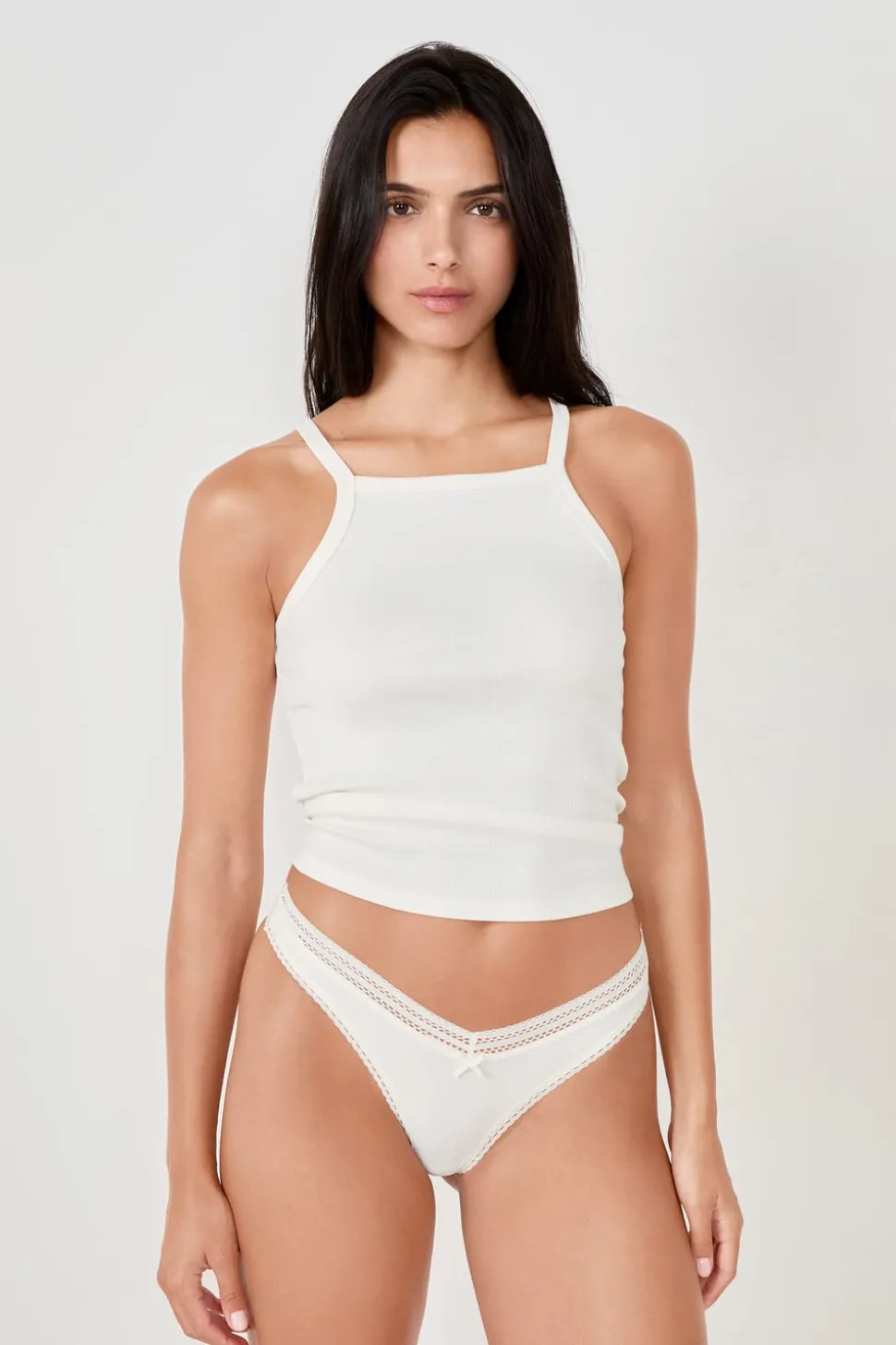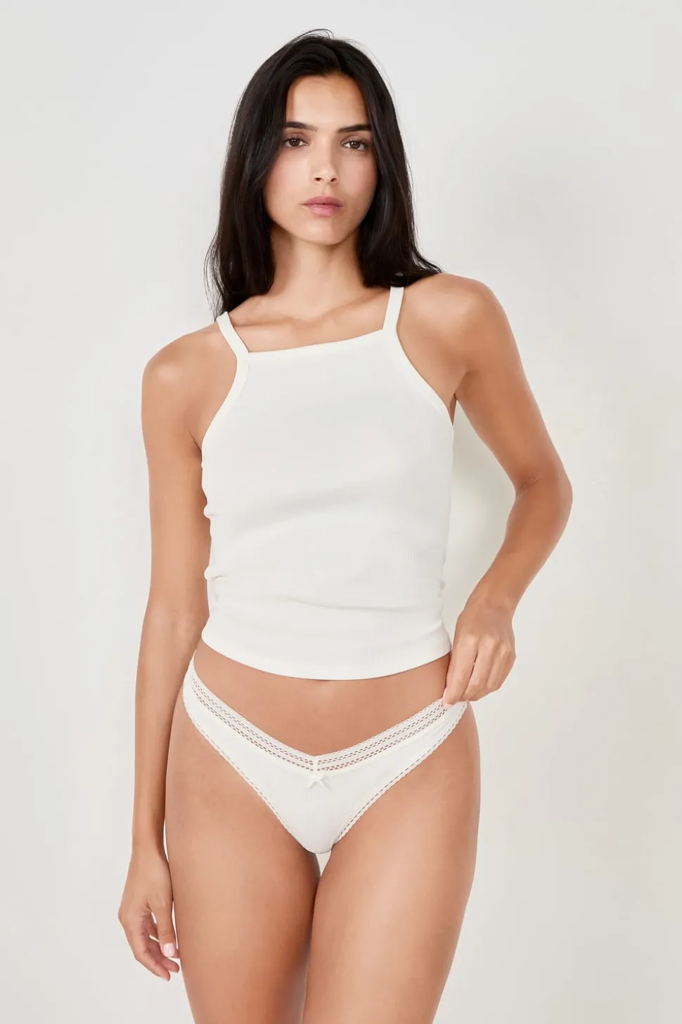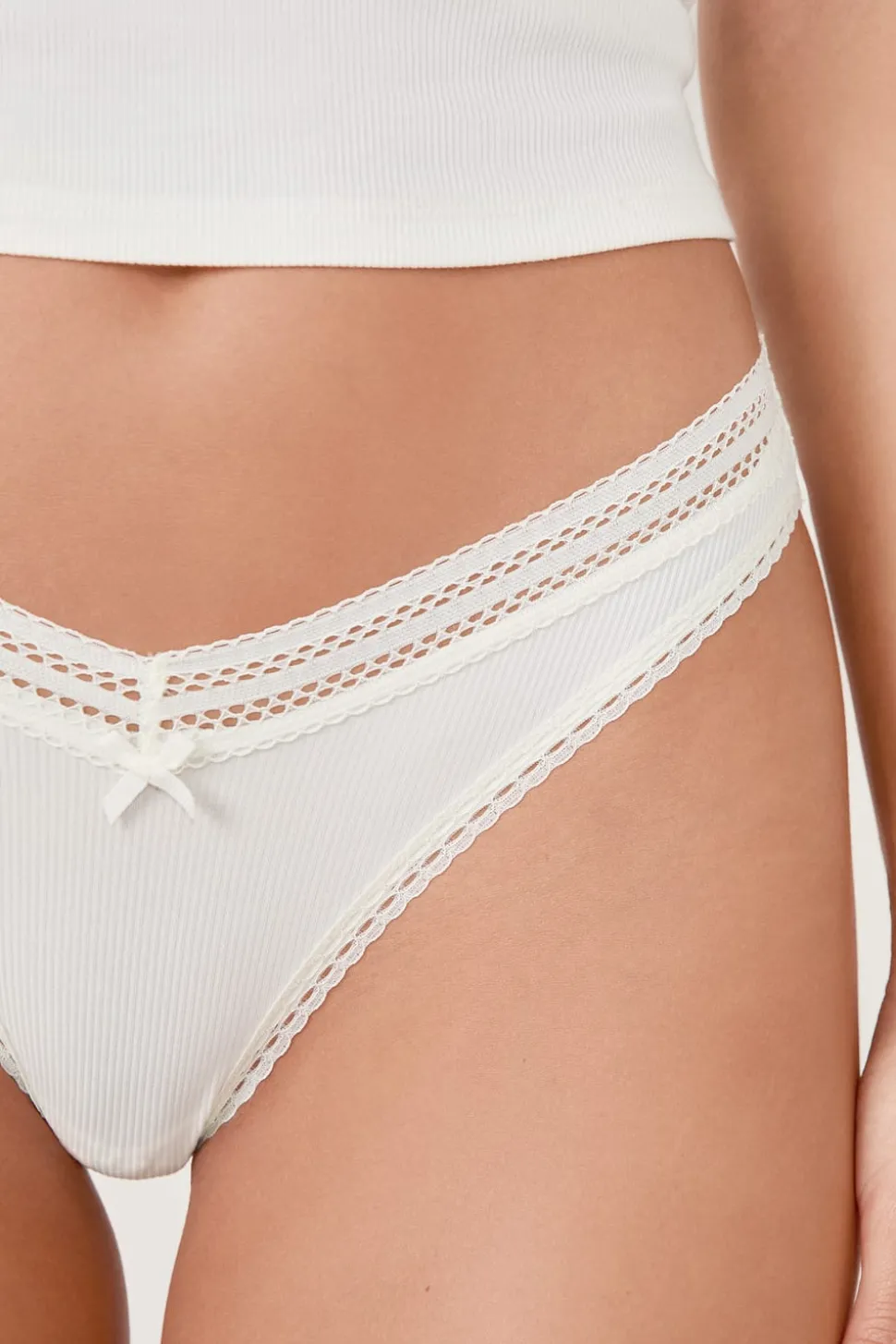 Tanga en V de microfibra y encaje