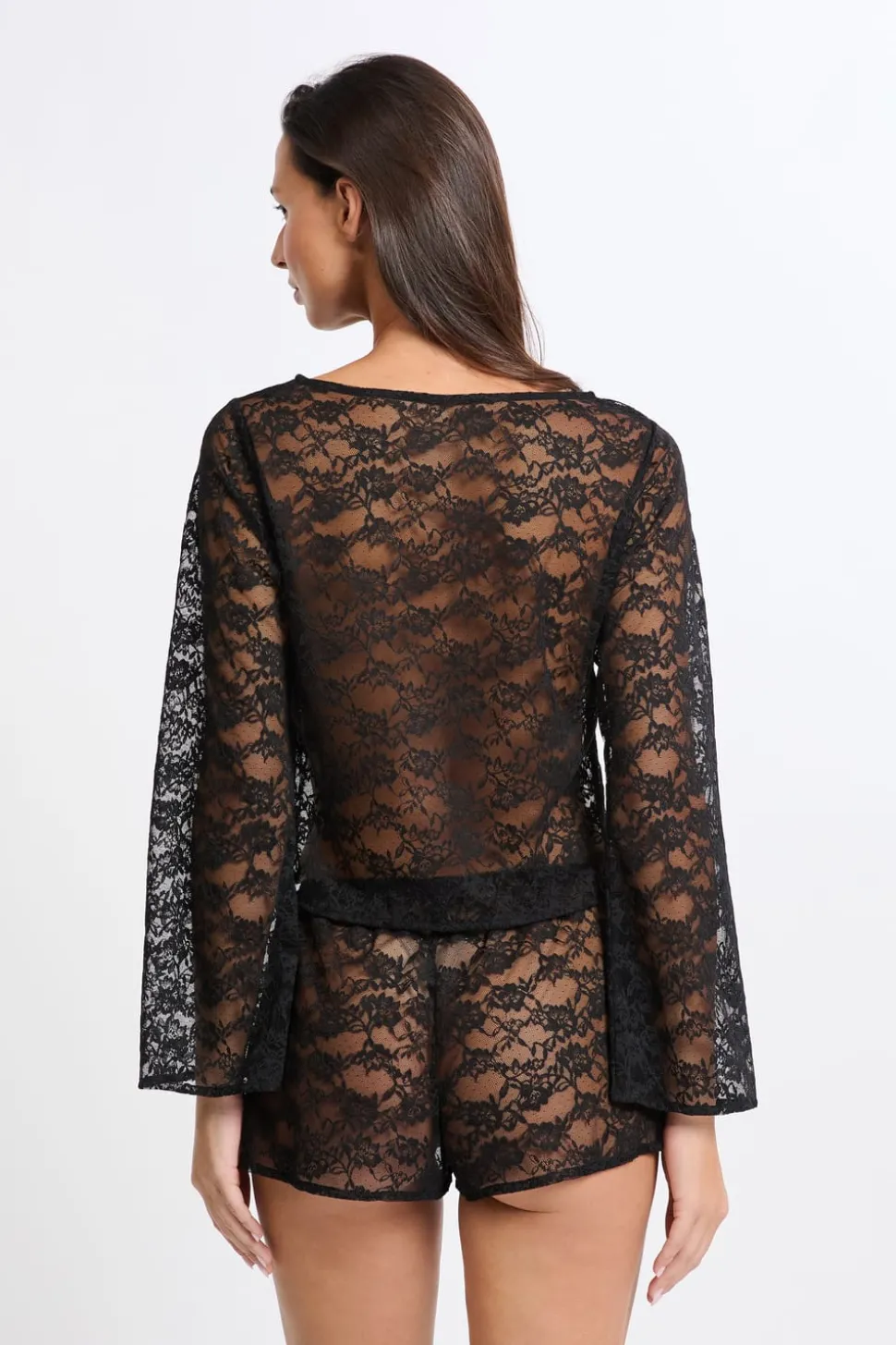 Top de manga larga de encaje transparente