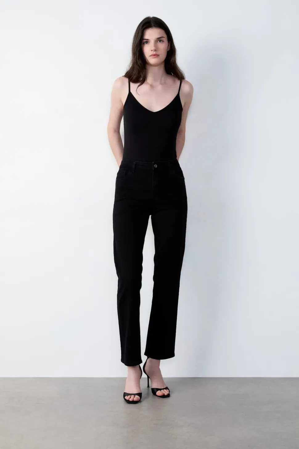 Top de mezcla de algodón con tirantes finos