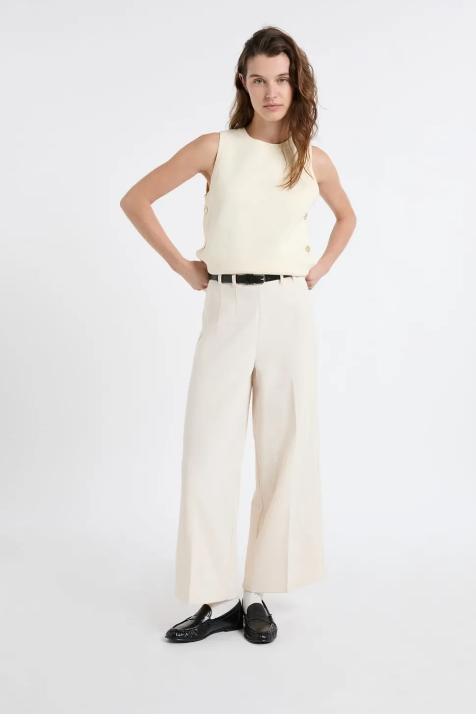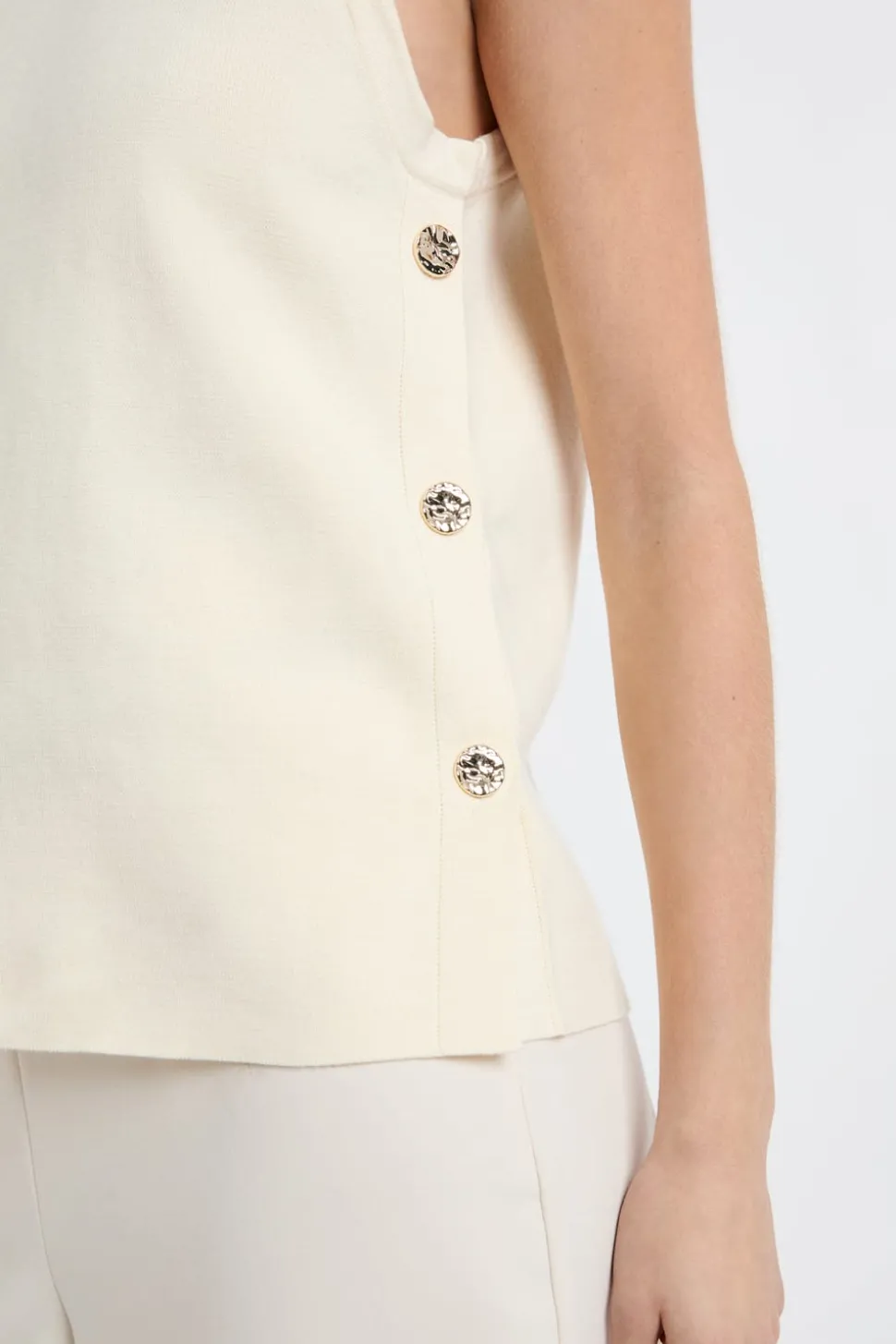 Top sin mangas de algodón con botones dorados