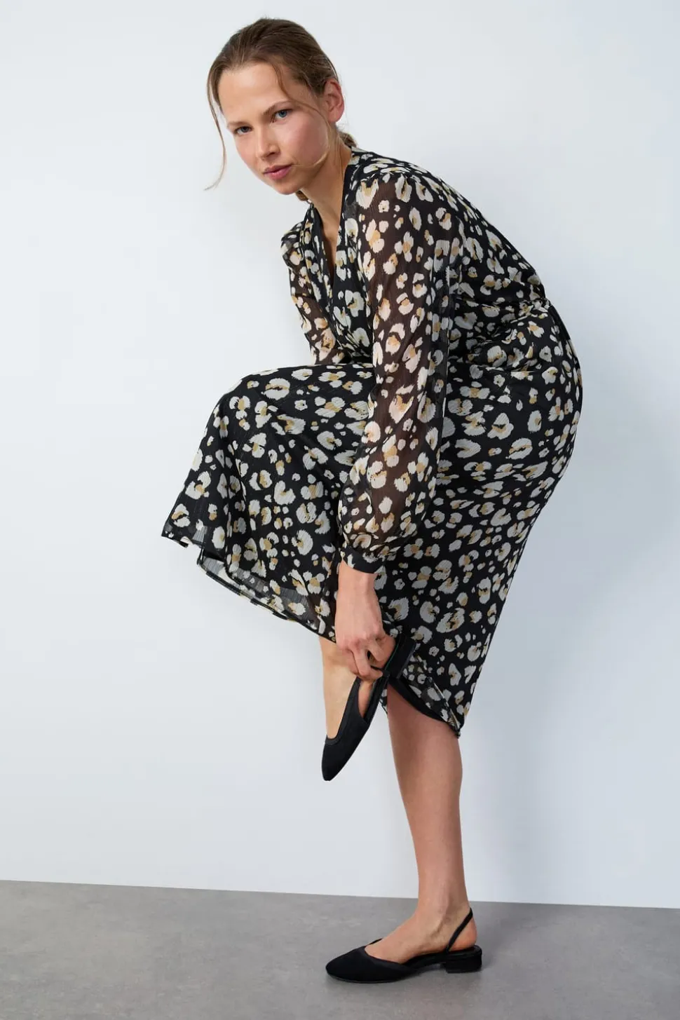 Vestido largo estampado fluido