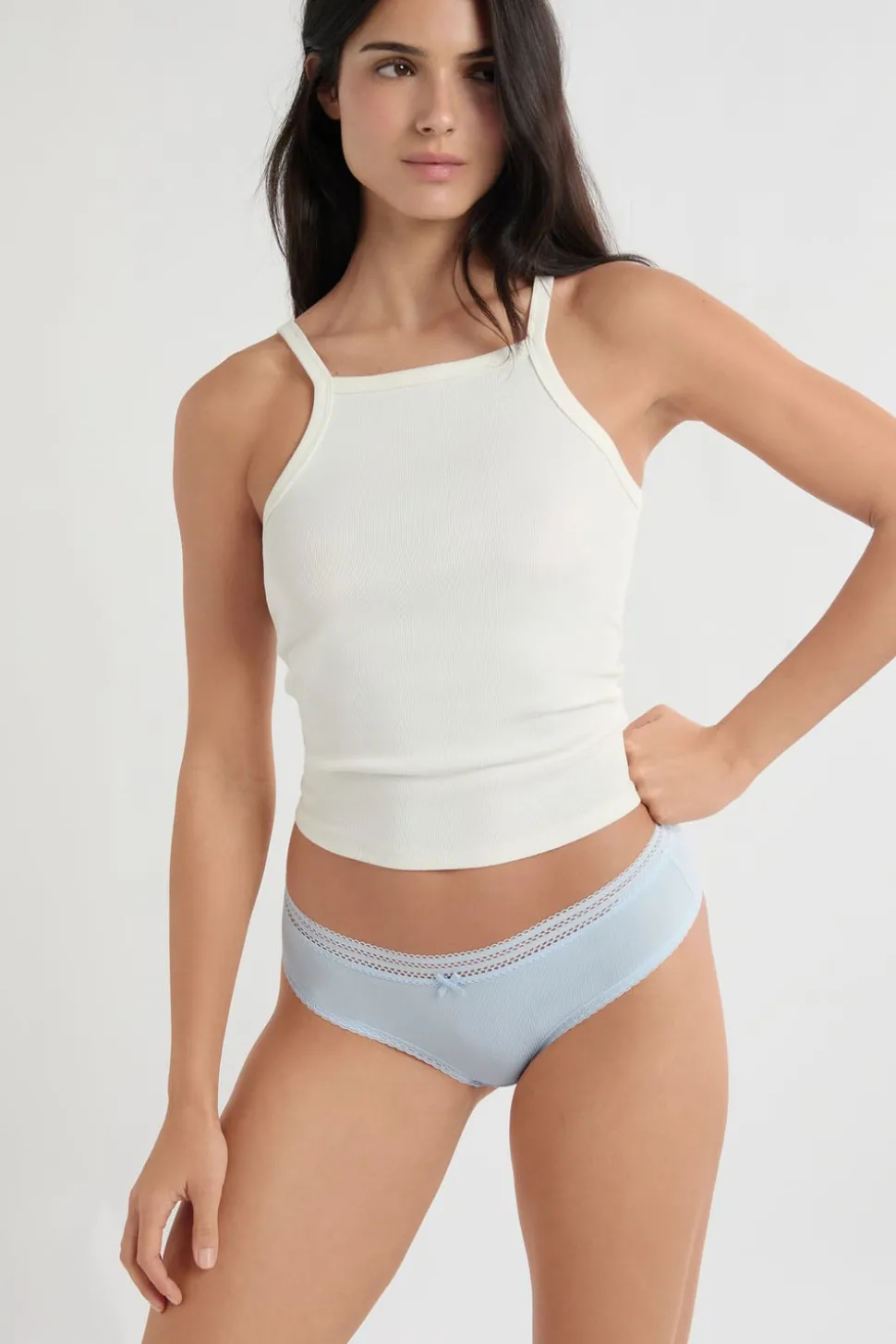 Braga culotte de microfibra con detalles de encaje