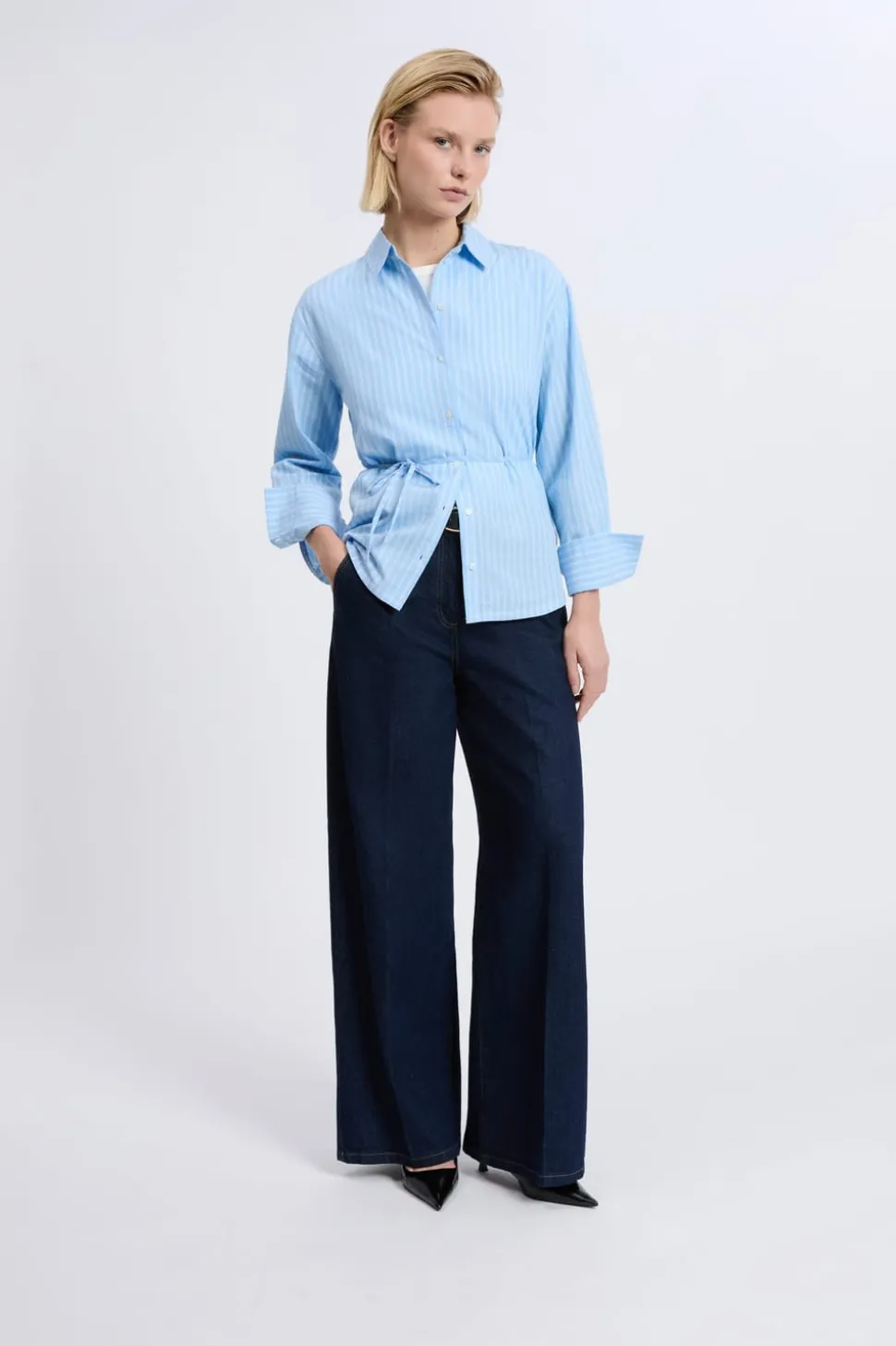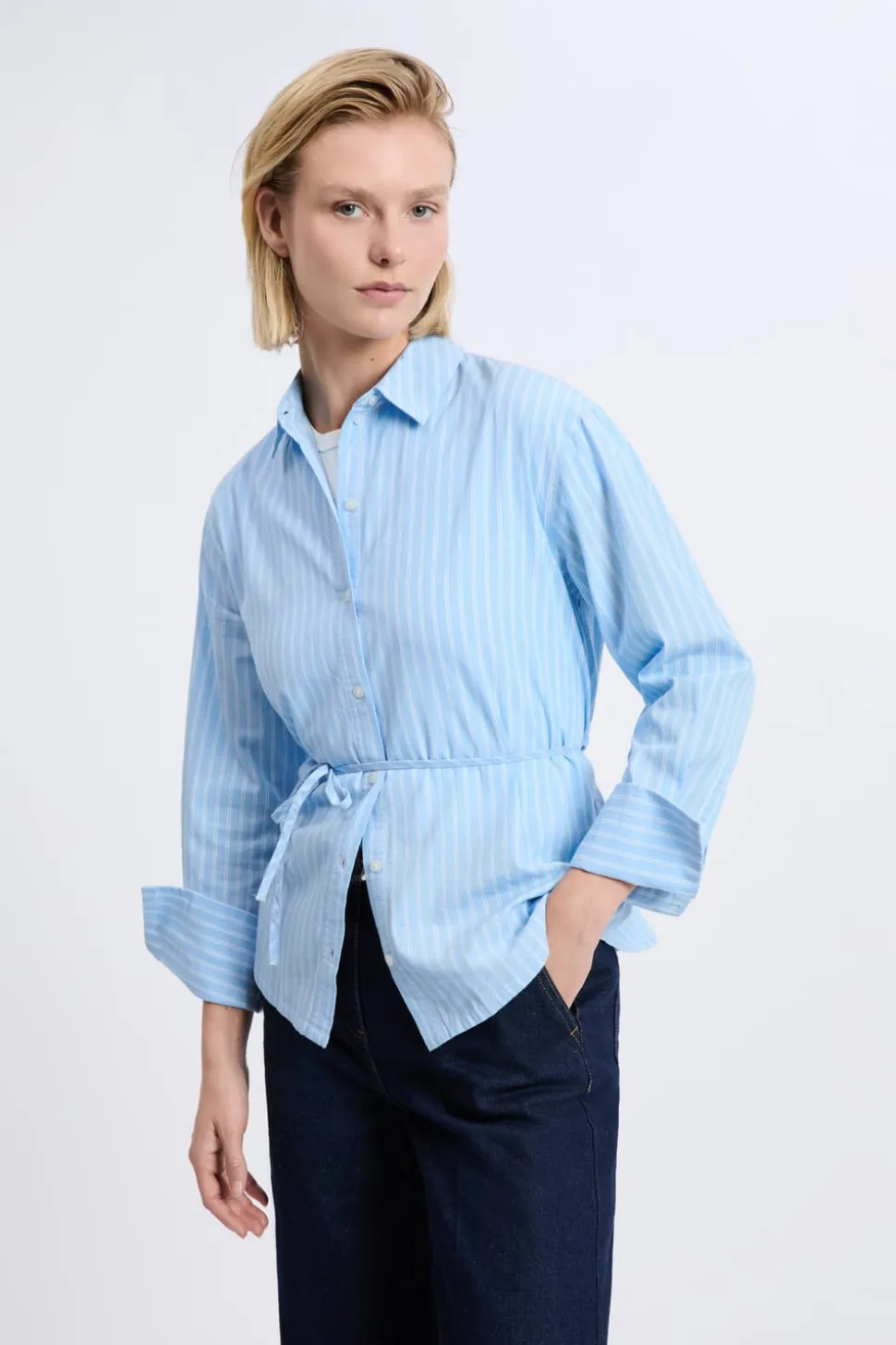 Camisa de manga larga de algodón con cinturón