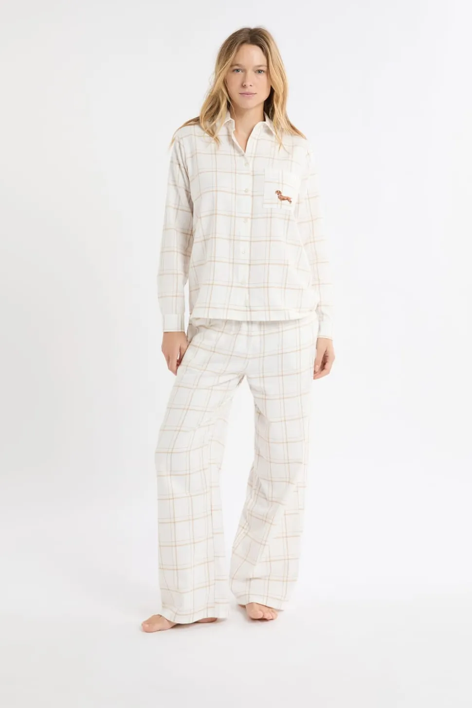 Camisa de pijama a cuadros con estampado de perros en algodón