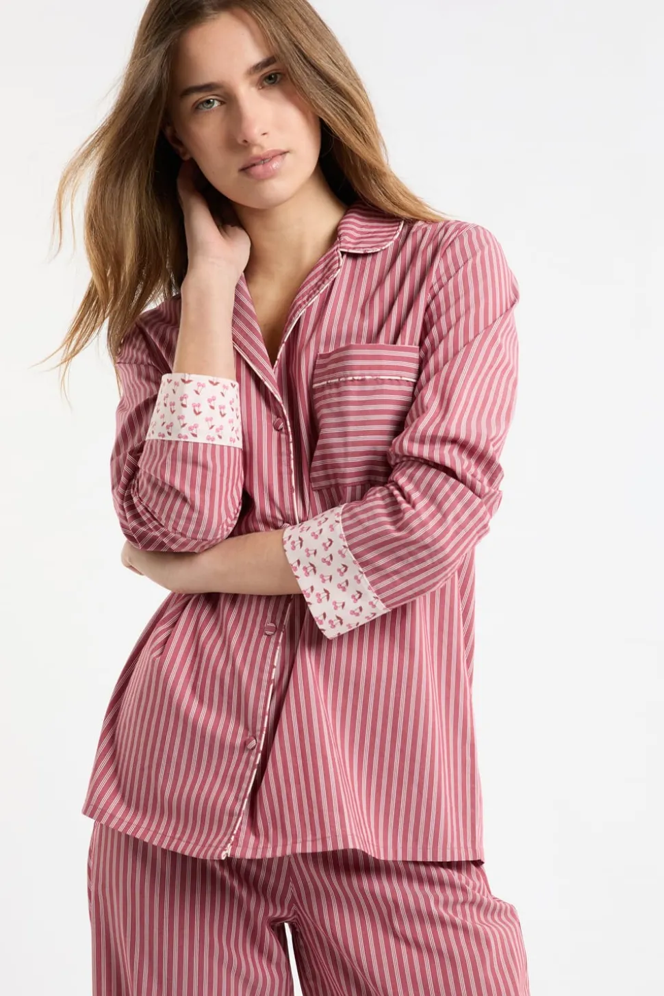 Camisa de pijama a rayas con algodón