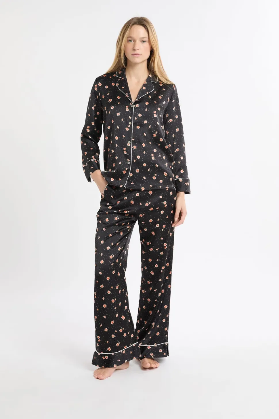 Camisa de pijama con estampado floral de satén