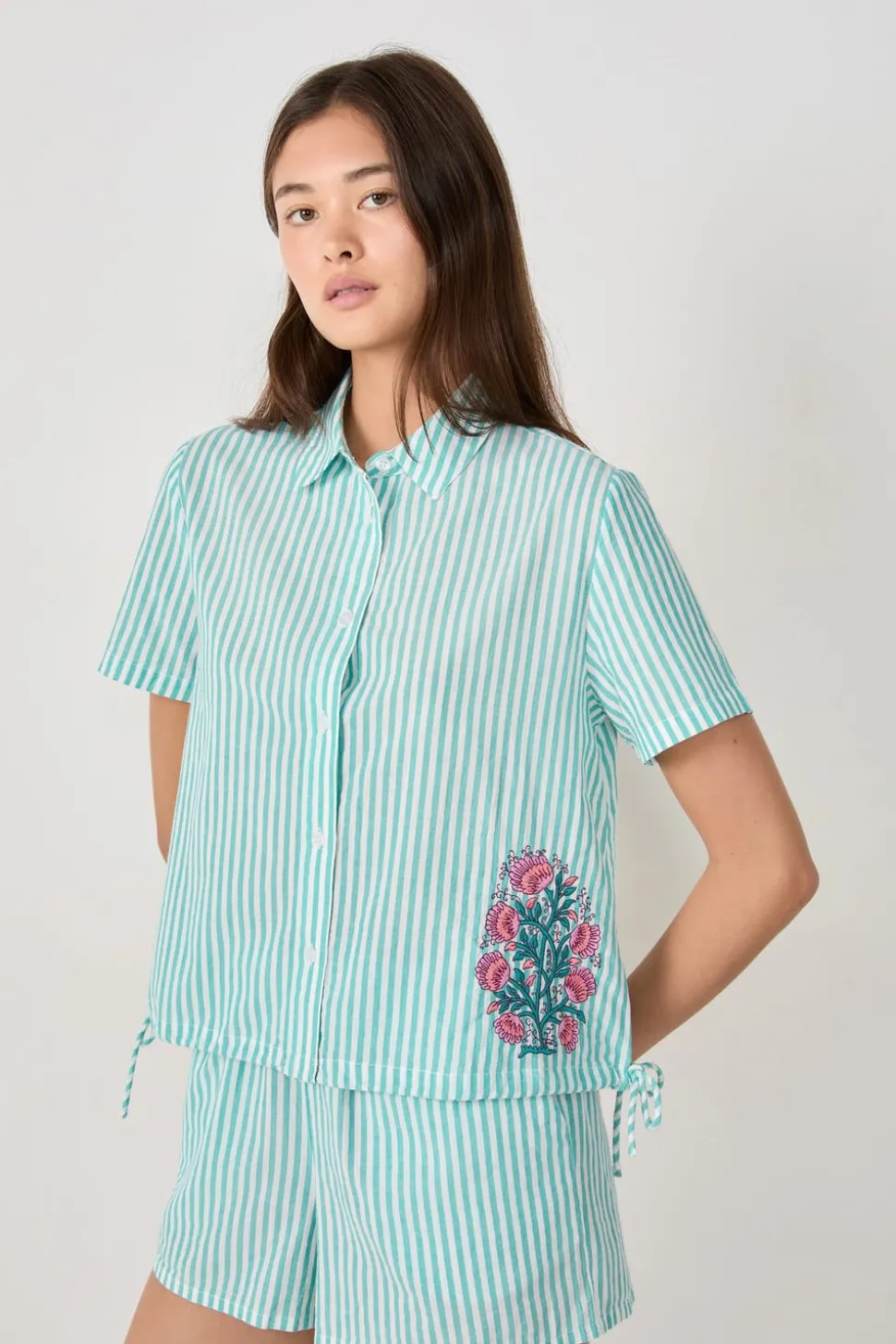 Camisa de pijama de algodón a rayas