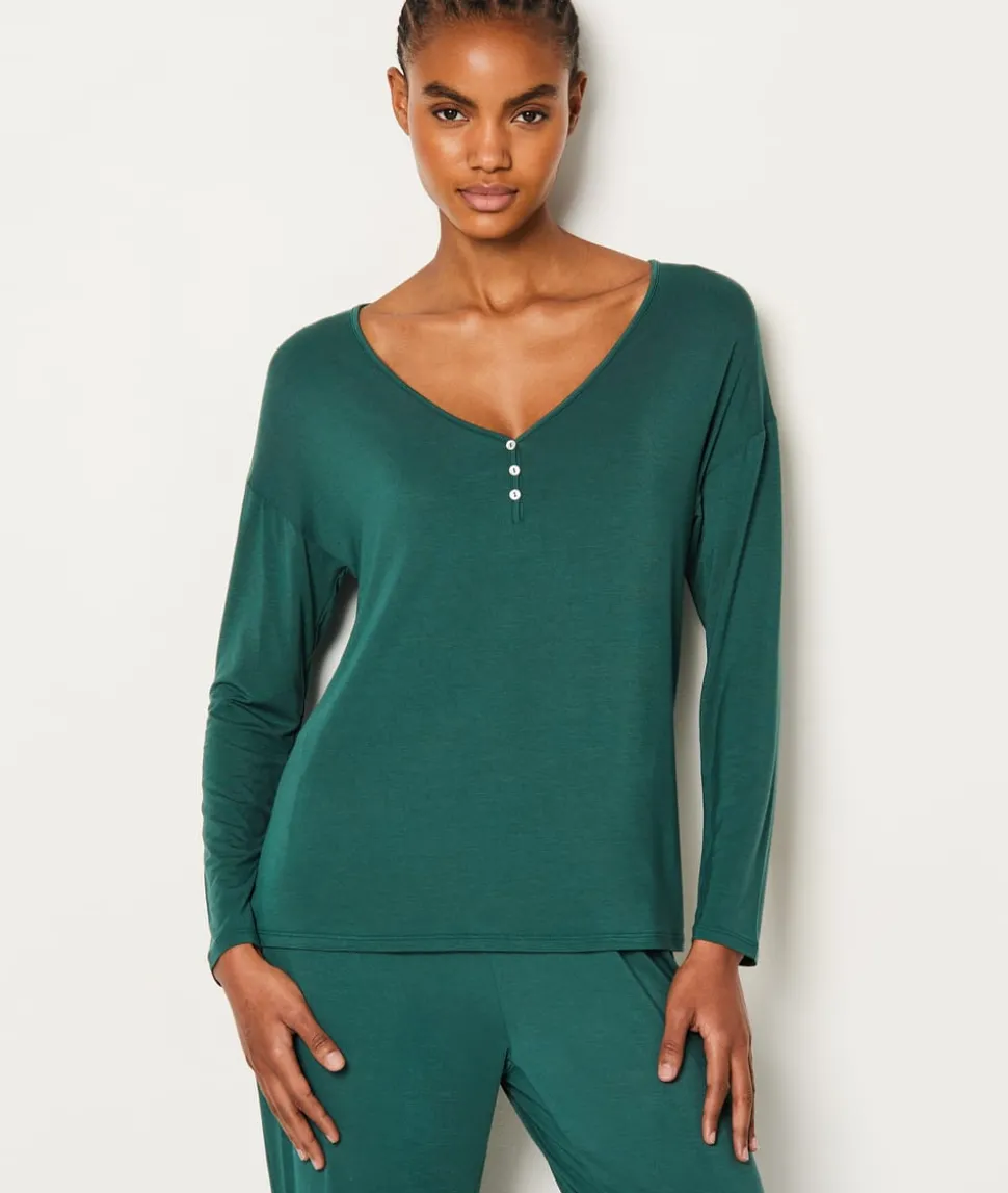 Camisa de pijama de manga larga abotonada de modal