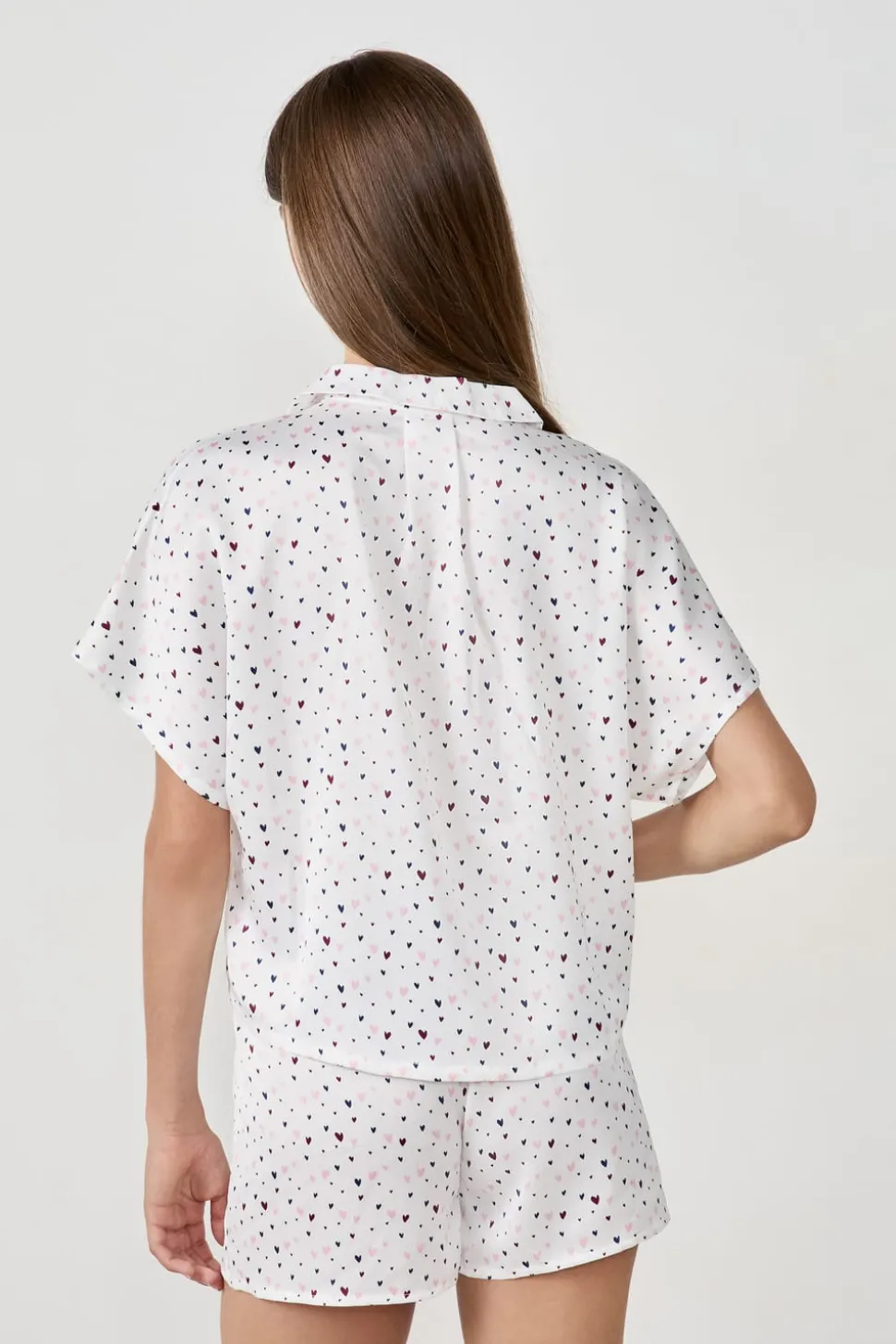 Camisa de pijama de satén con estampado de corazones