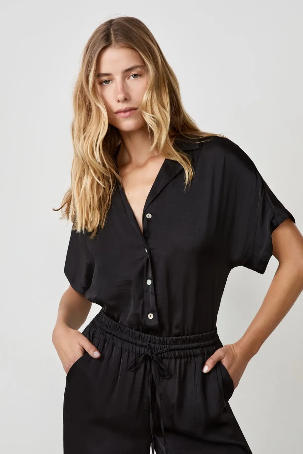 Camisa de satén de manga corta
