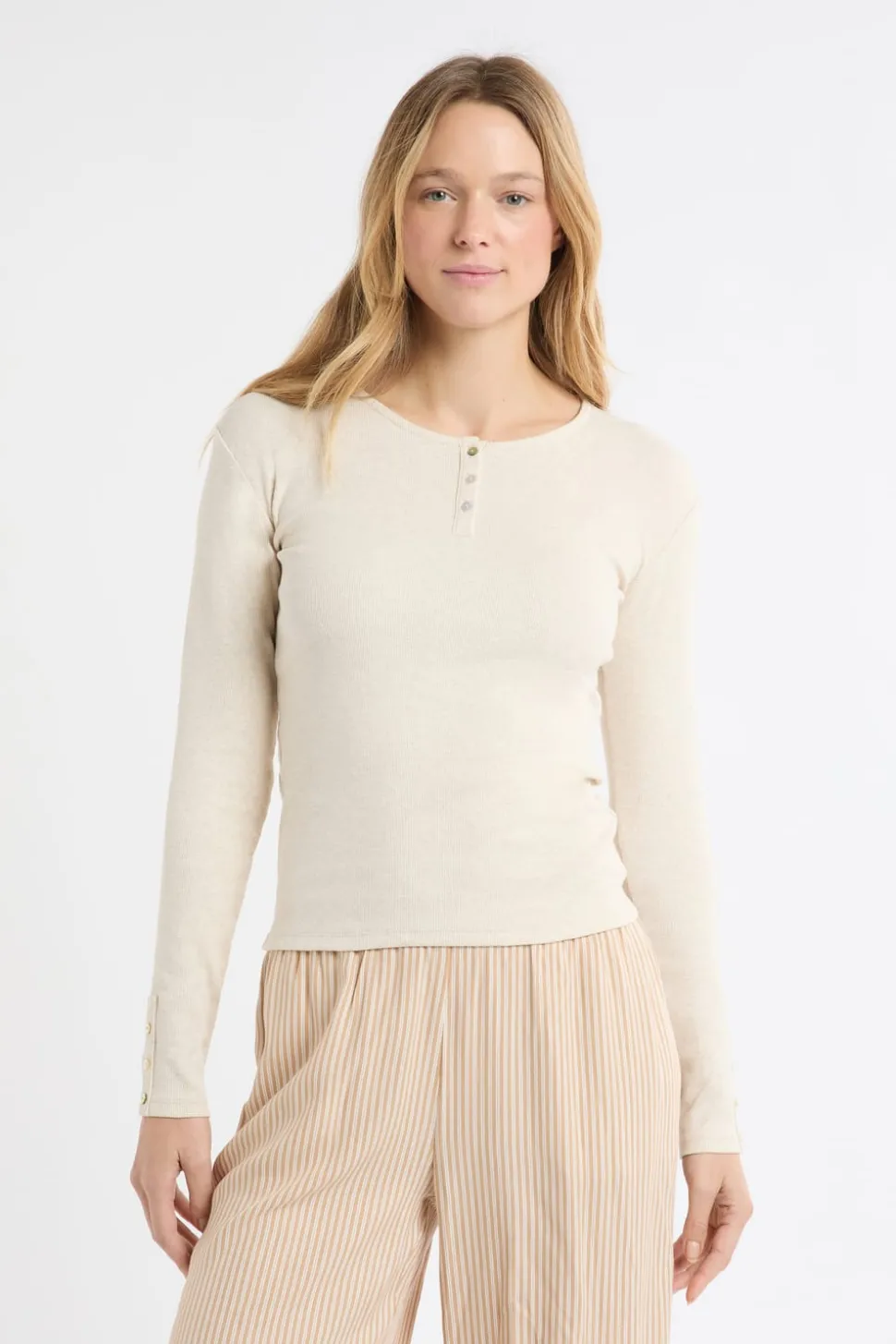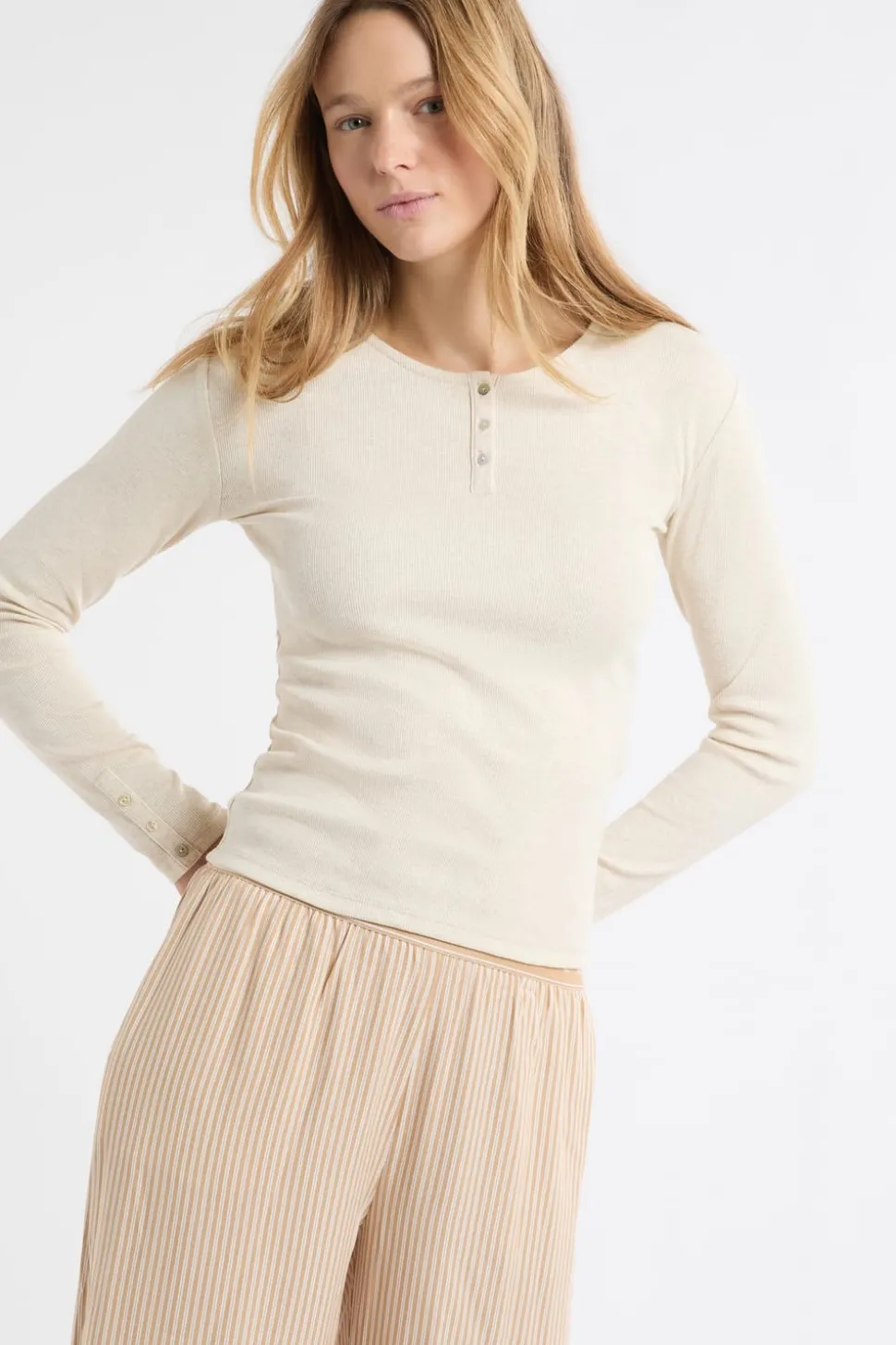 Camiseta de manga larga de algodón con botones