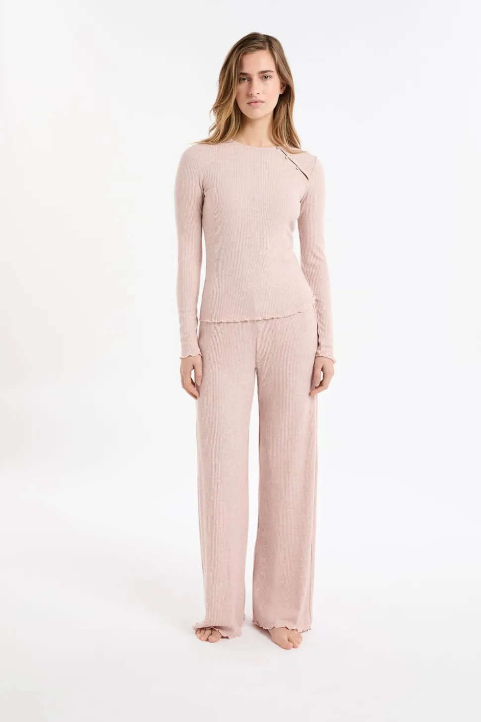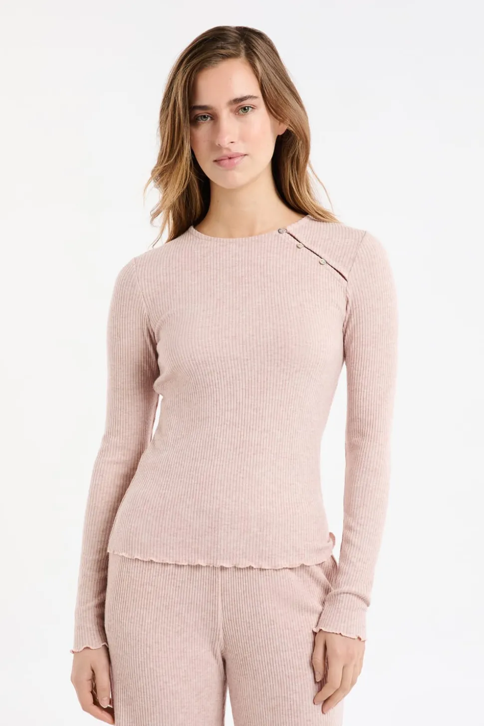 Camiseta de pijama acanalada con botones