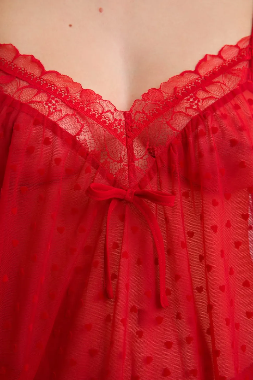 Camisón de tul con estampado de corazones