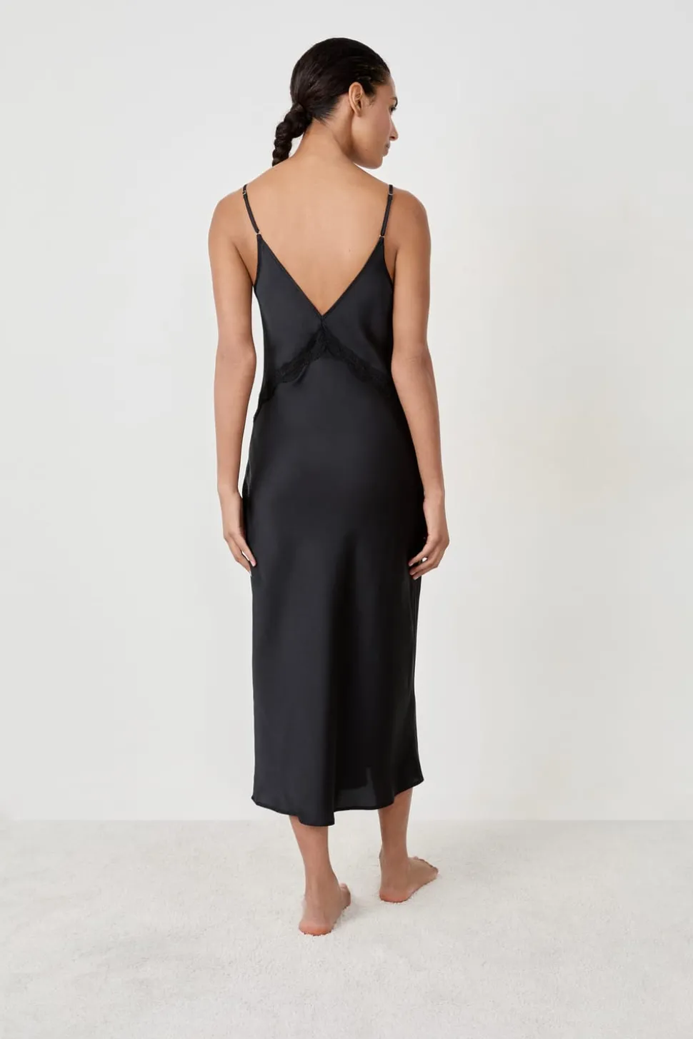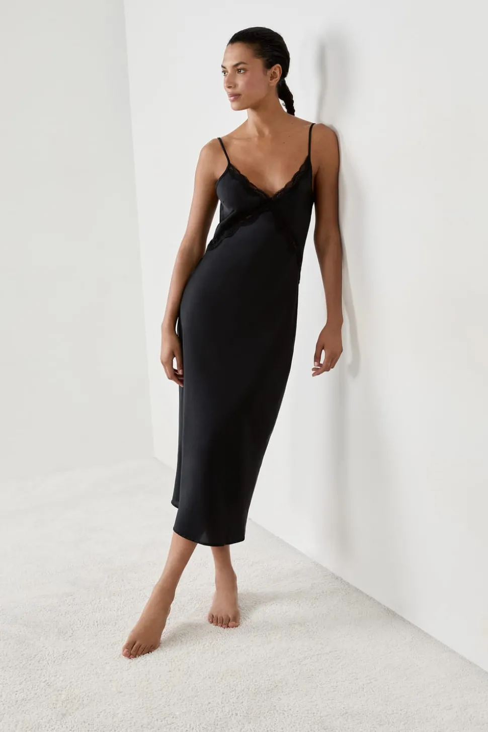 Camisón largo satinado con detalles de encaje