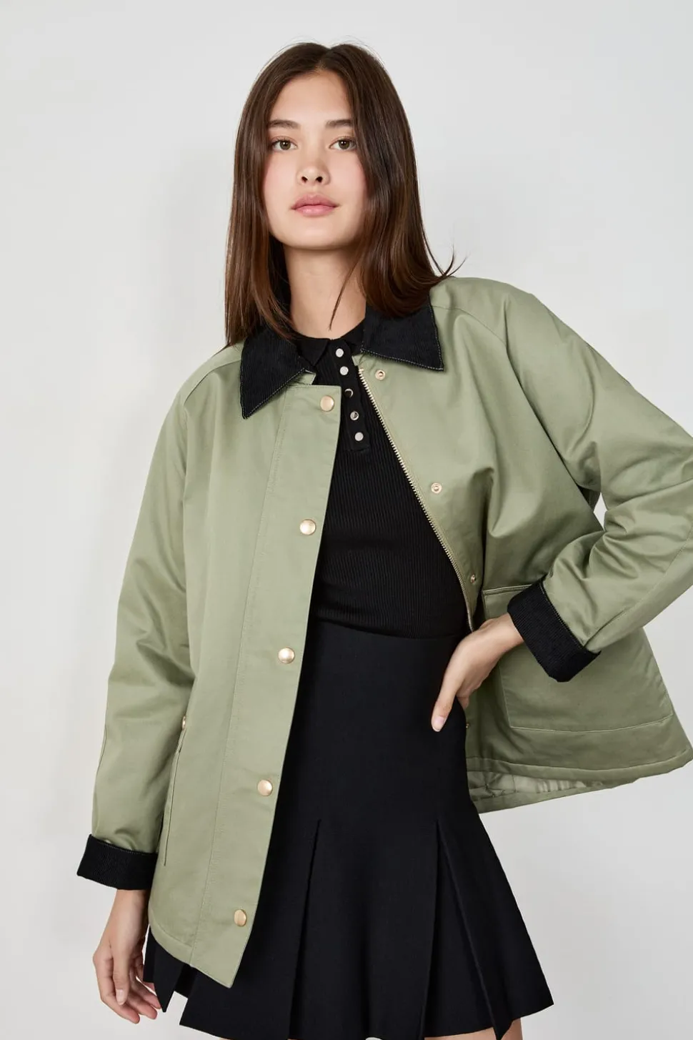 Chaqueta con cuello de terciopelo y corte recto