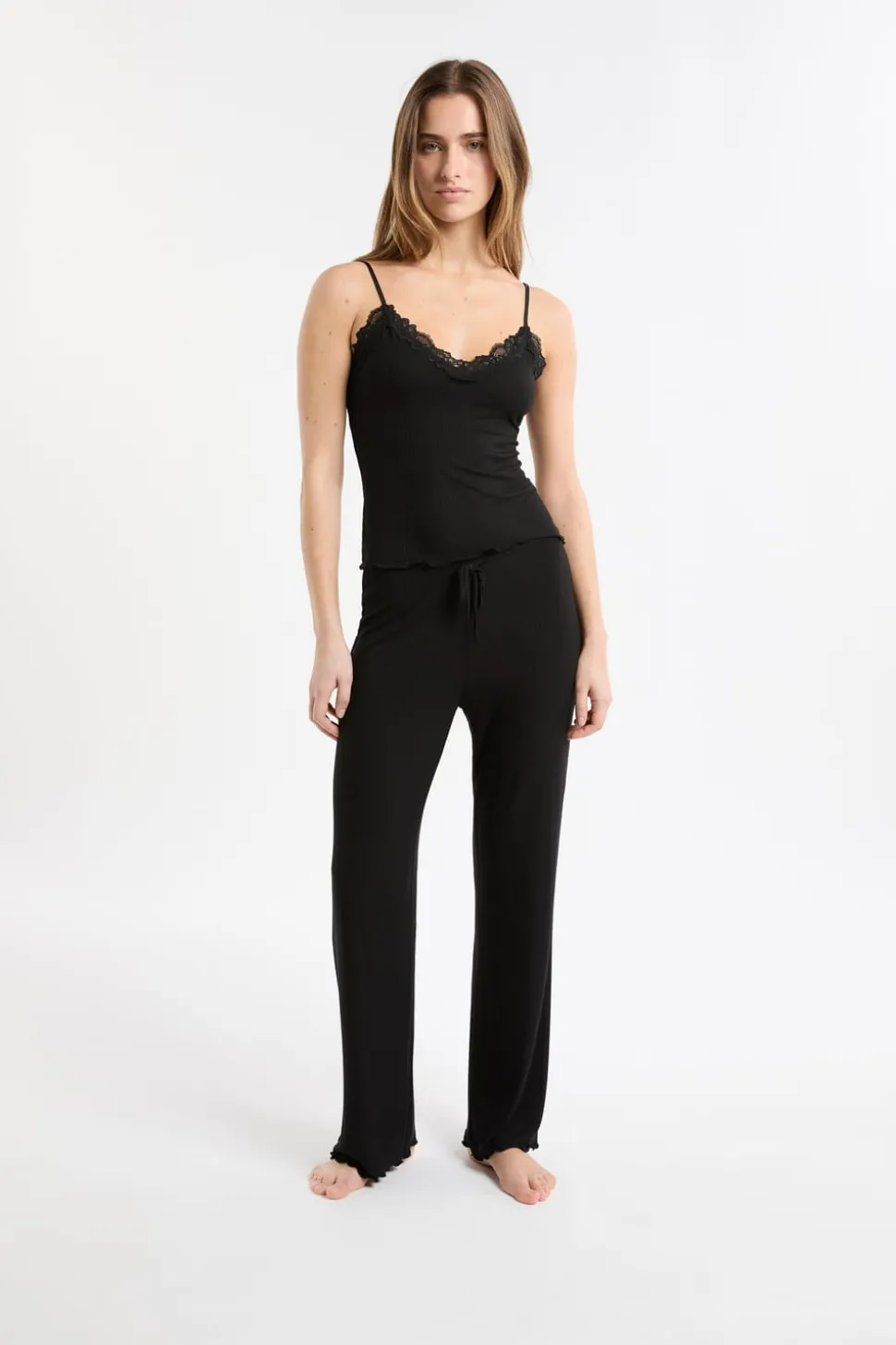 Conjunto de pijama de 2 piezas de punto acanalado con detalles de encaje