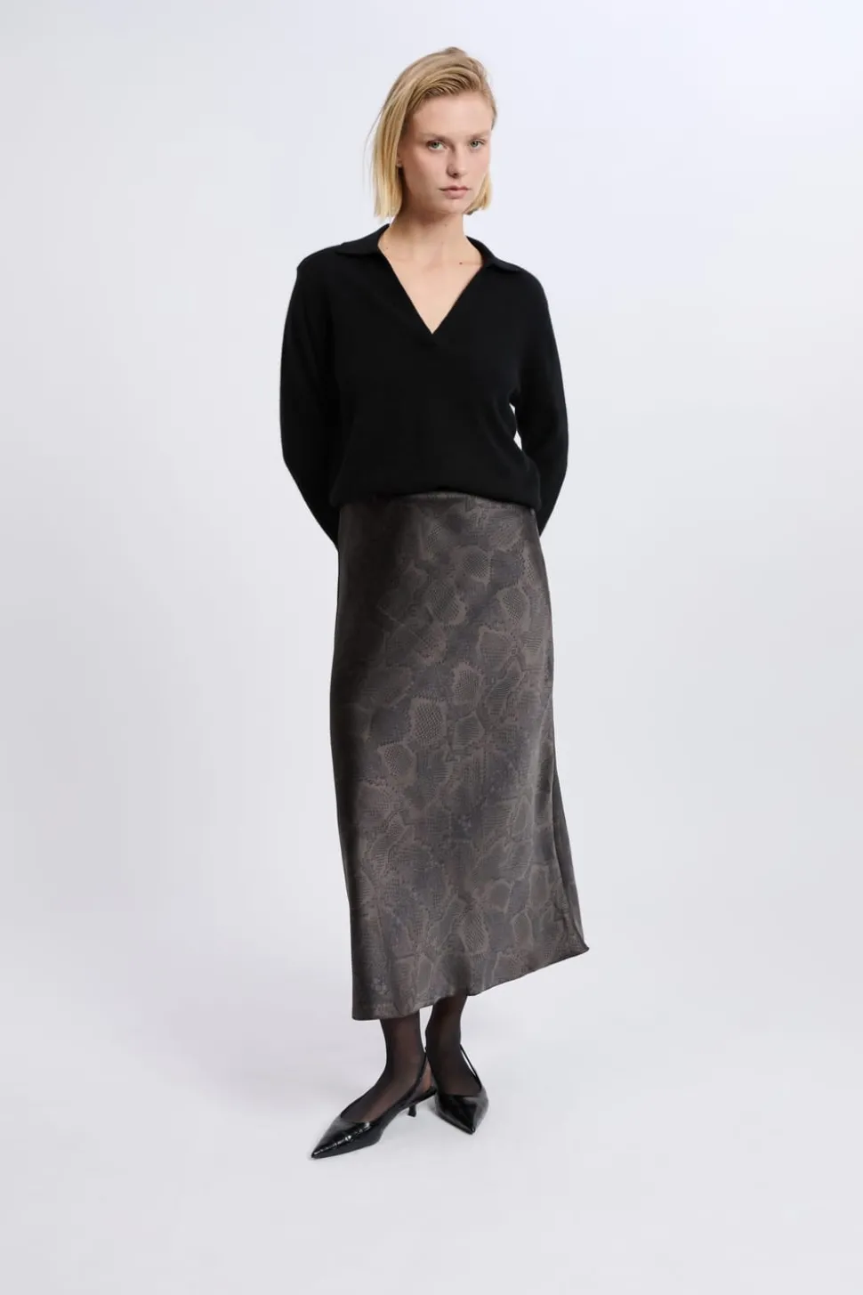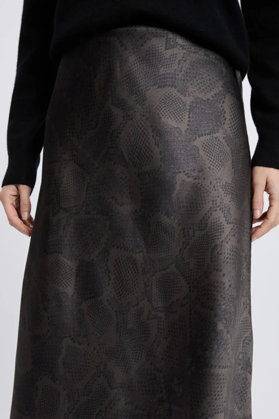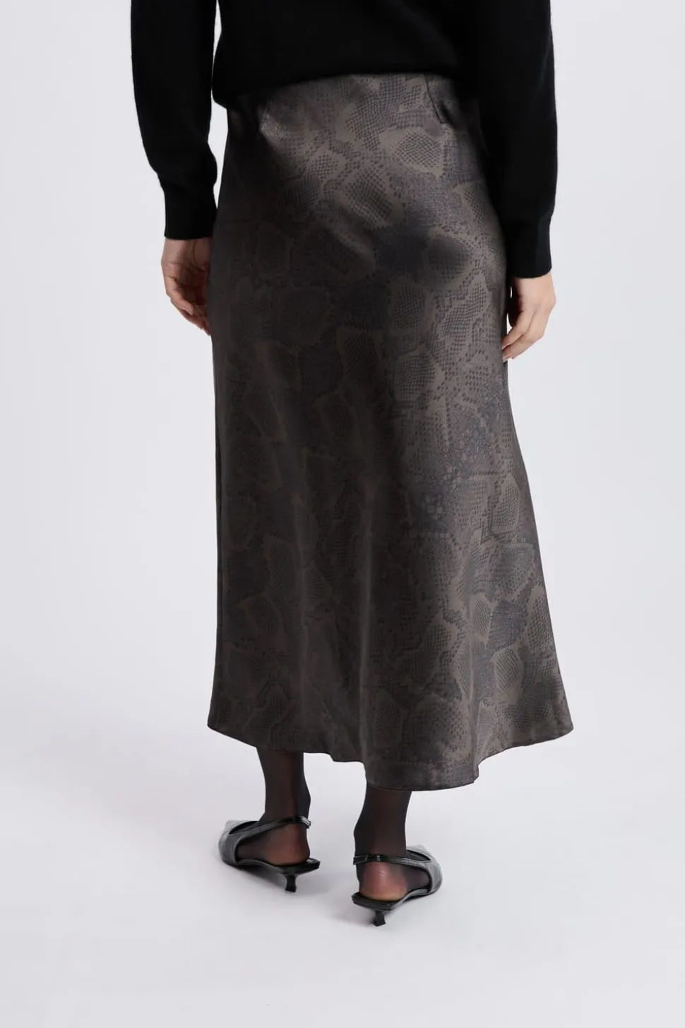 Jupe longue effet satiné à imprimé serpent