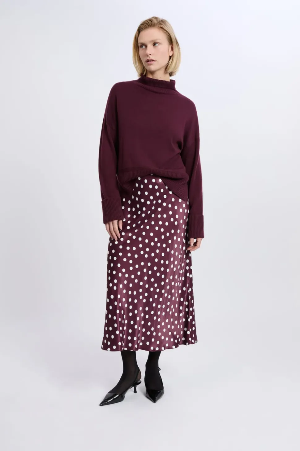 Jupe longue satinée à pois