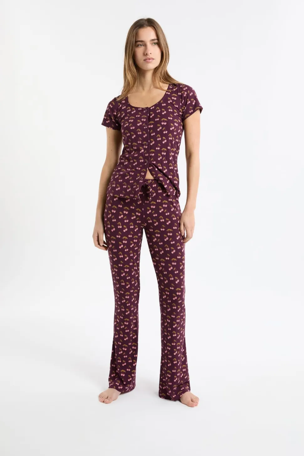 Pantalón de pijama con estampado de cerezas