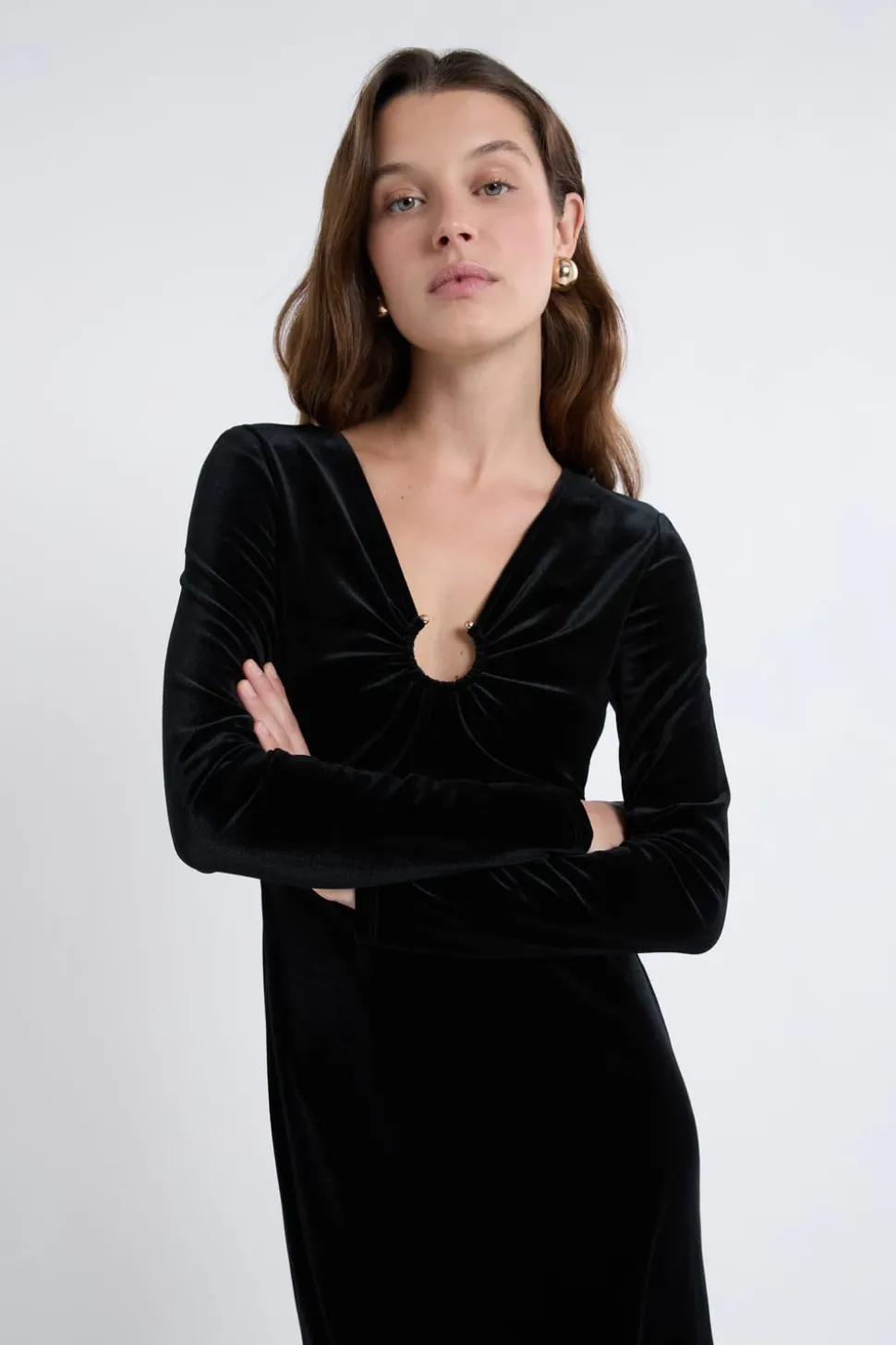 Robe à manches longues en velours avec détail anneaux
