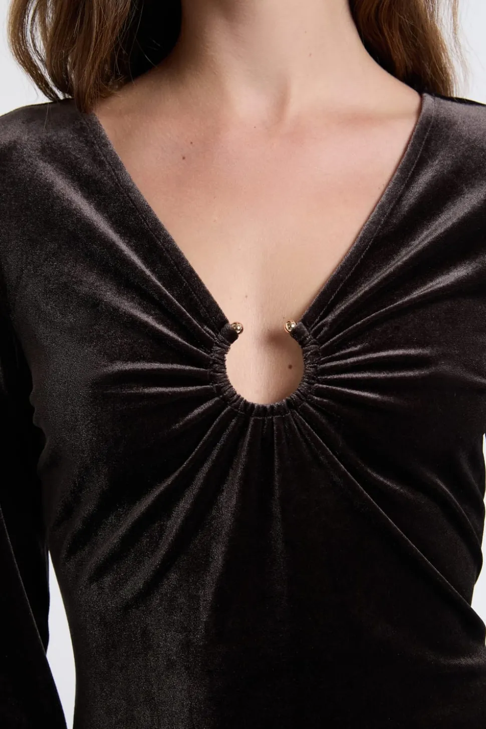 Robe à manches longues en velours avec détail anneaux