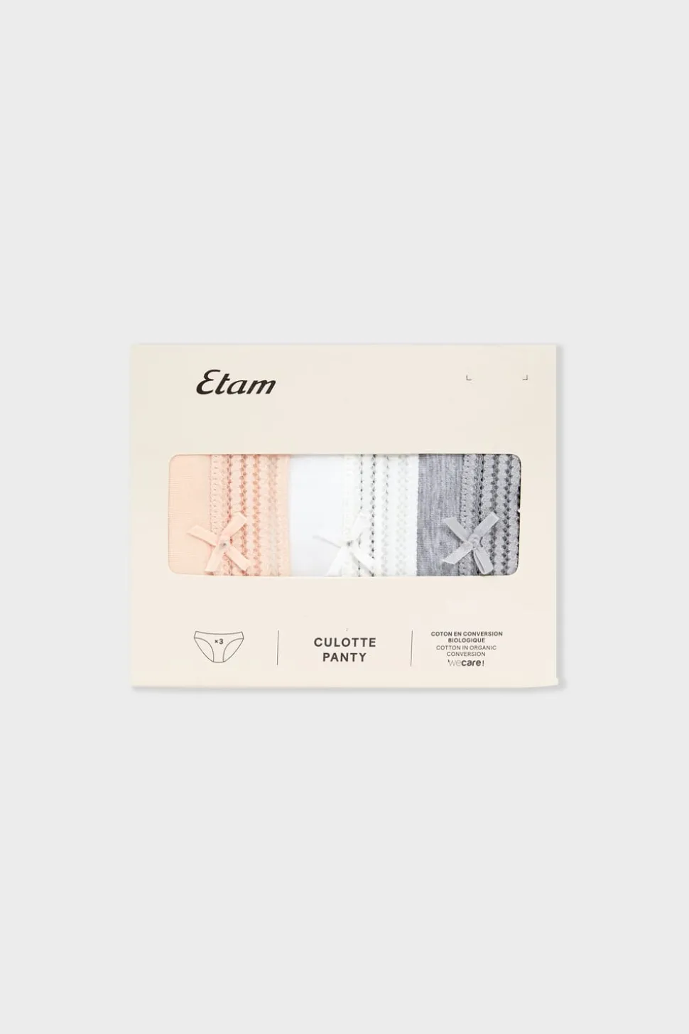 Set de 3 braguitas de algodón y encaje