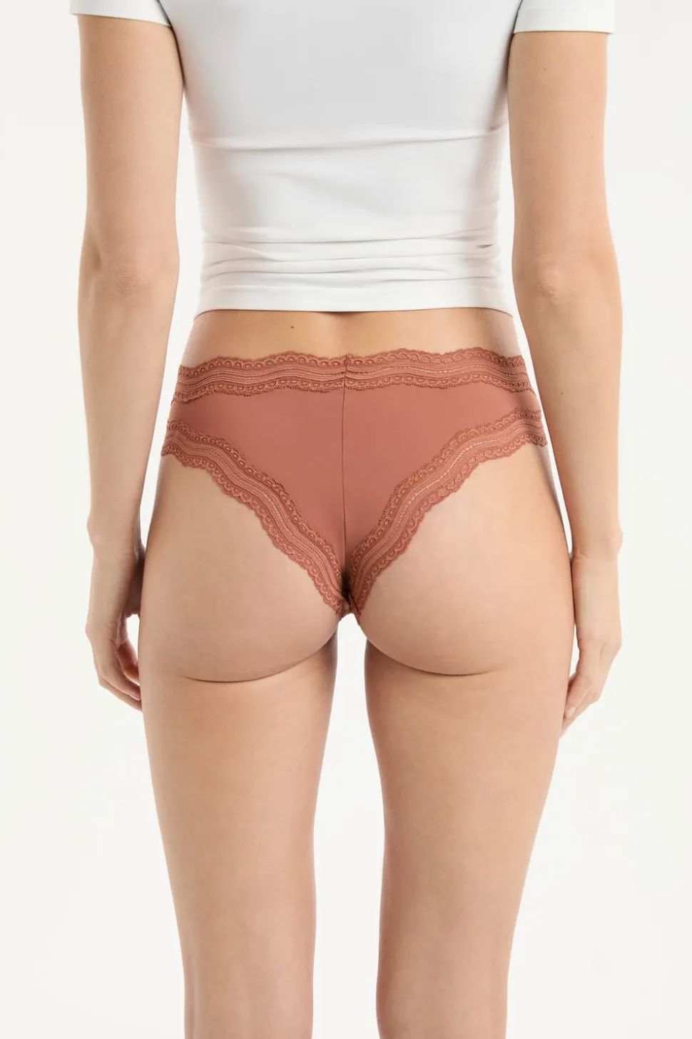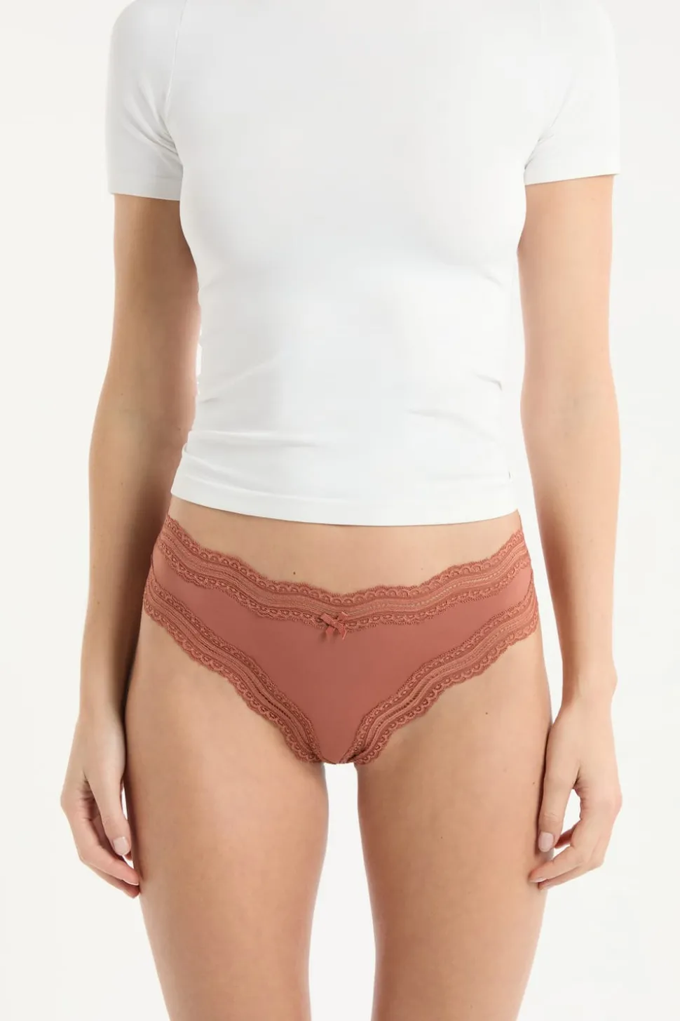 Tanga con bordes de encaje de microfibra