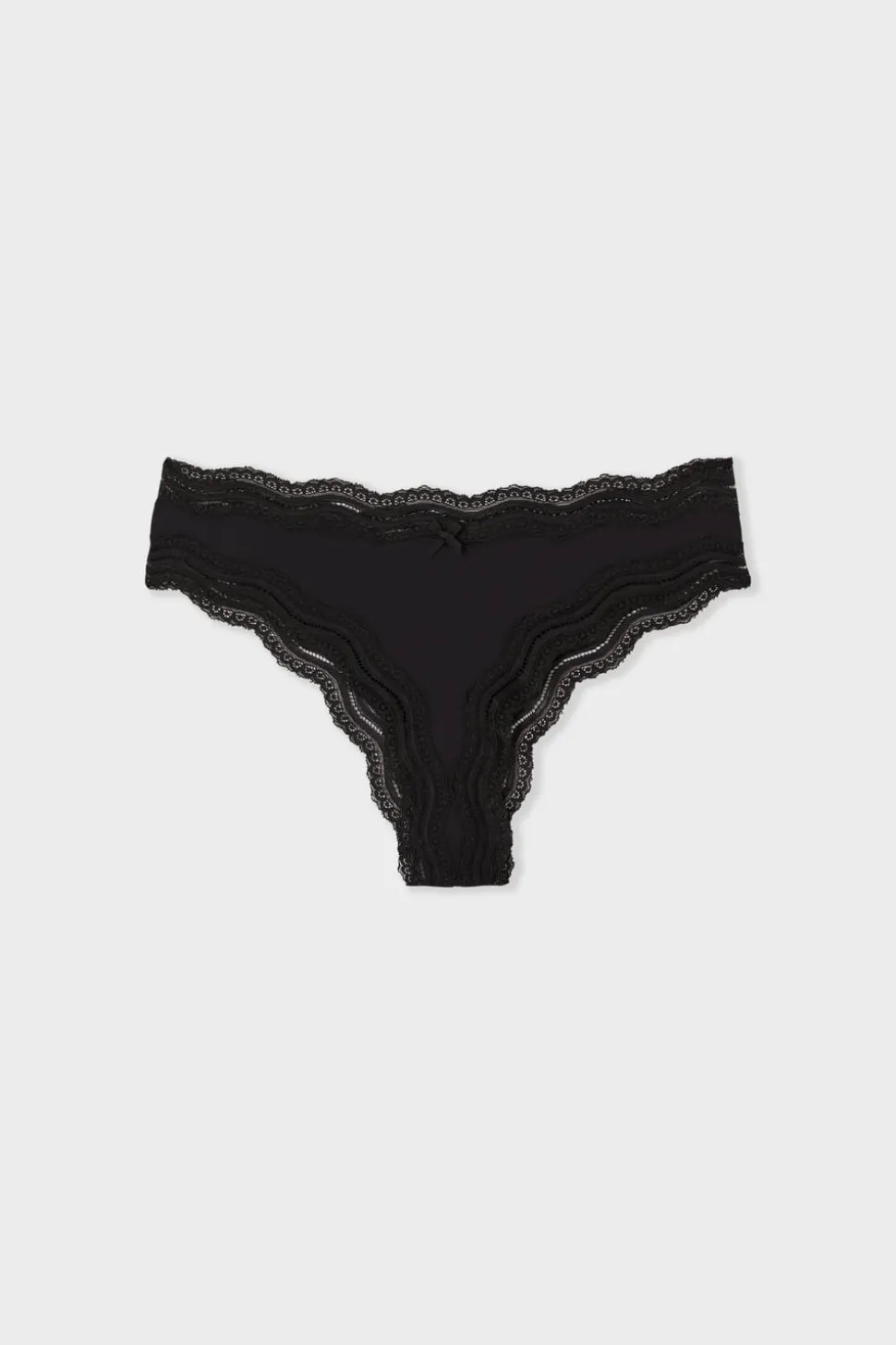 Tanga de microfibra con borde de encaje