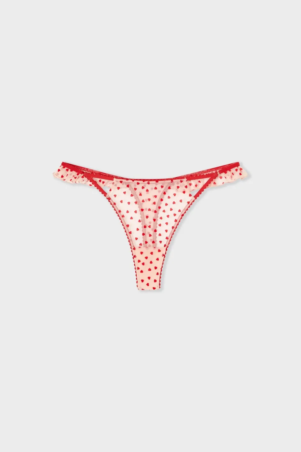 Tanga de tul con estampado de corazones