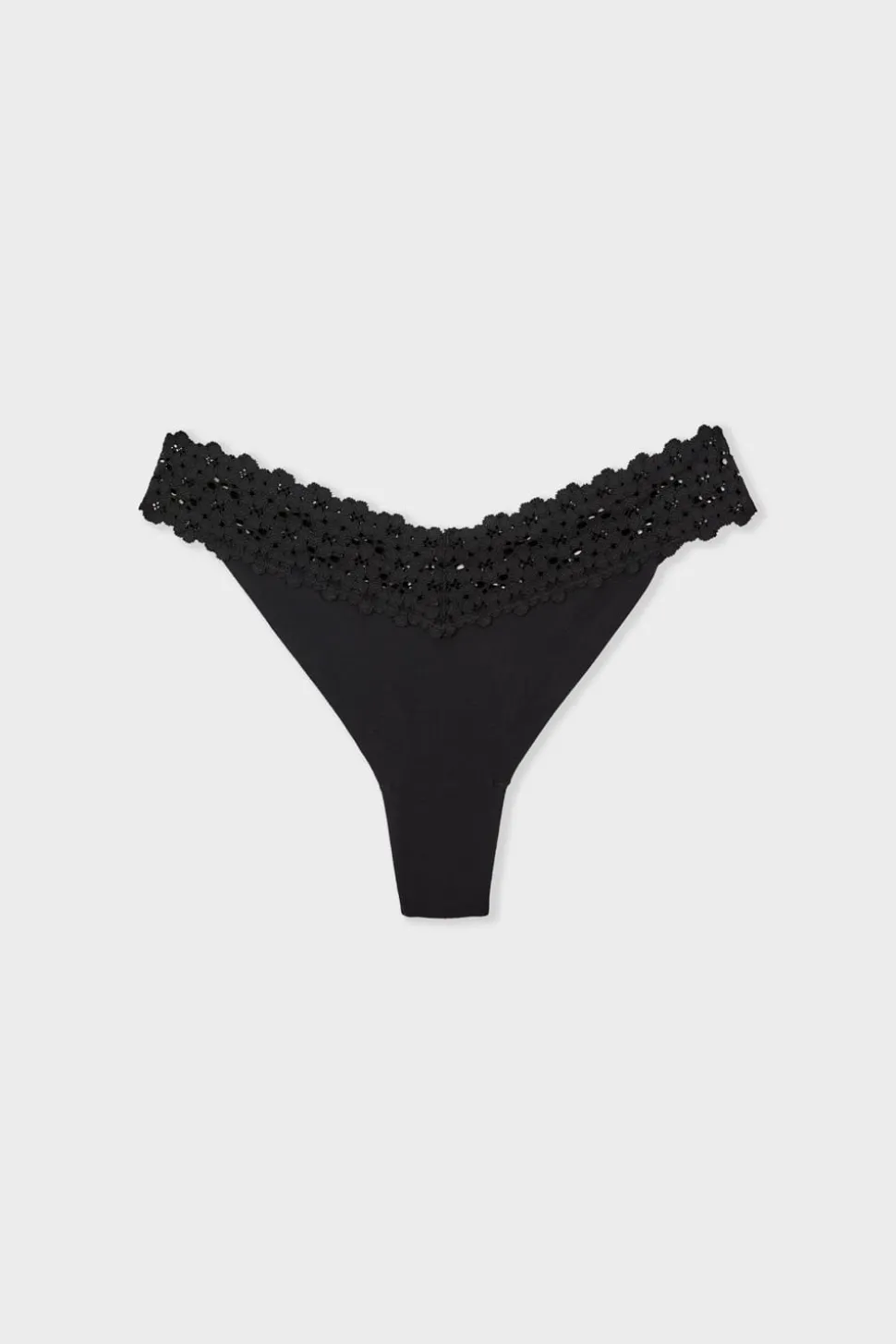 Tanga en V de microfibra y encaje
