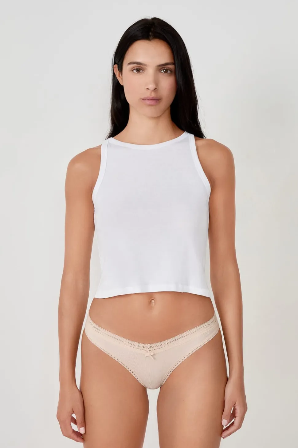 Tanga en V de microfibra y encaje