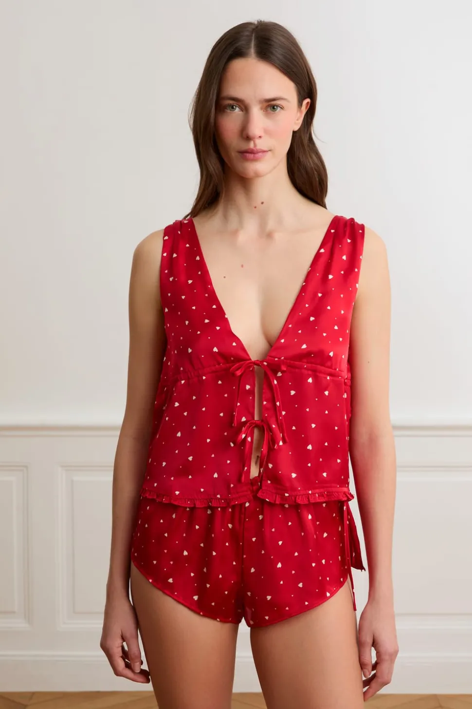 Top de pijama de satén con lunares