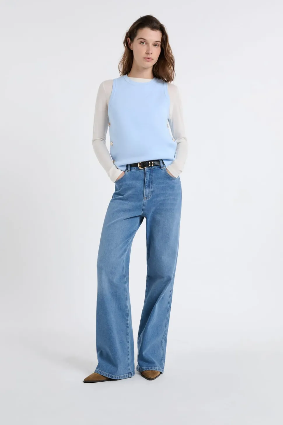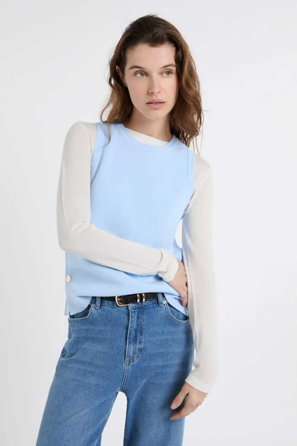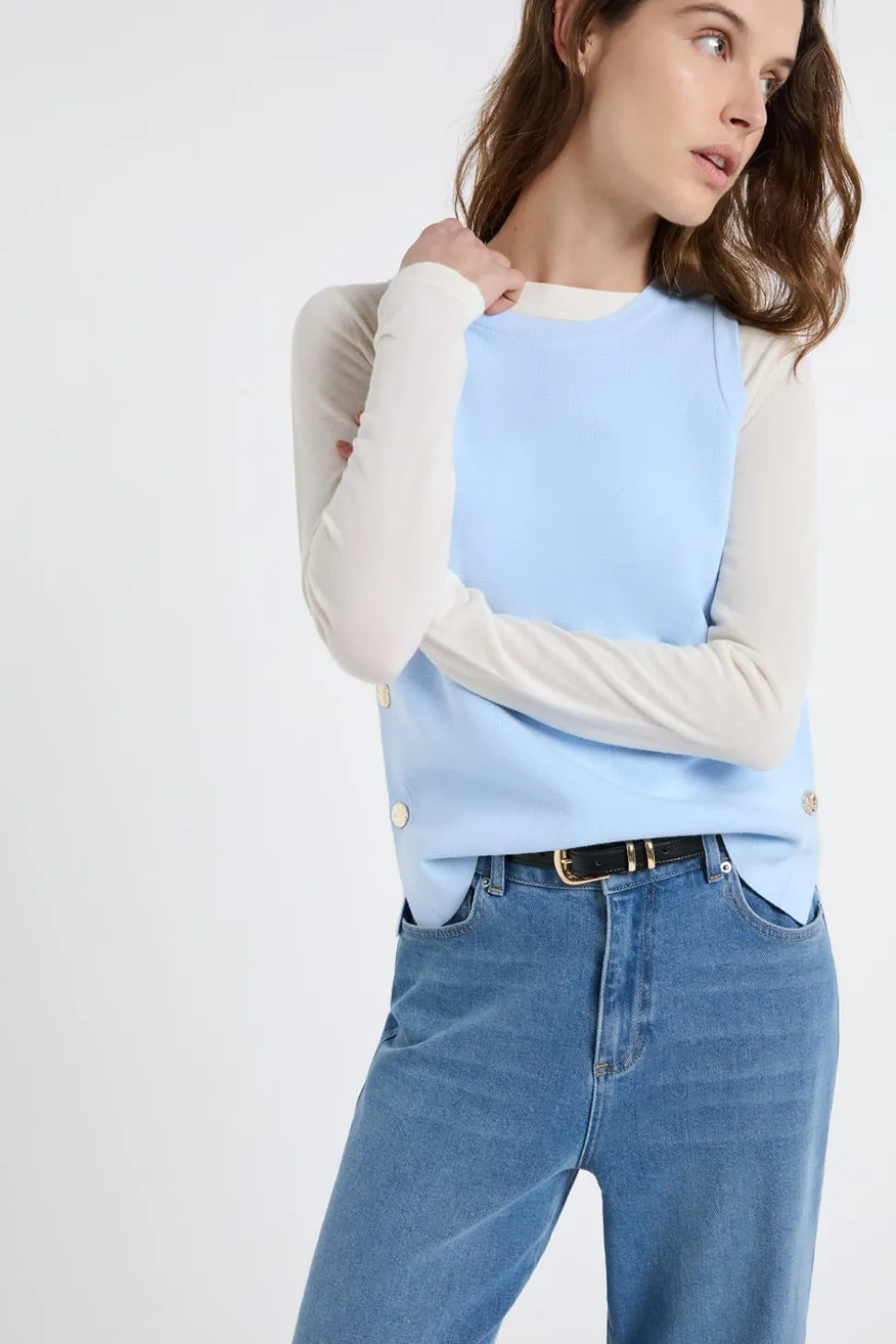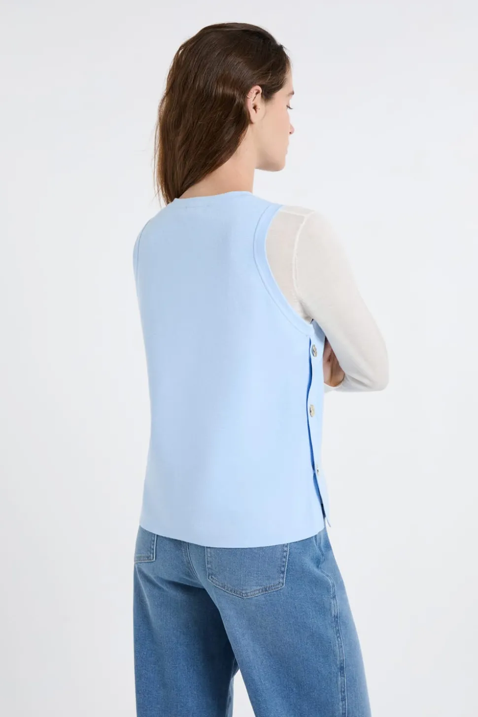 Top sin mangas de algodón con botones dorados