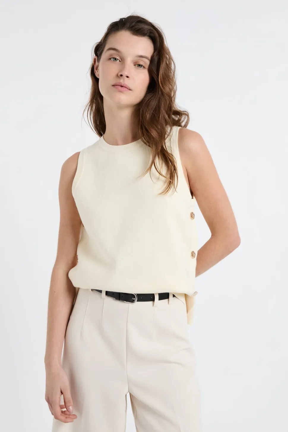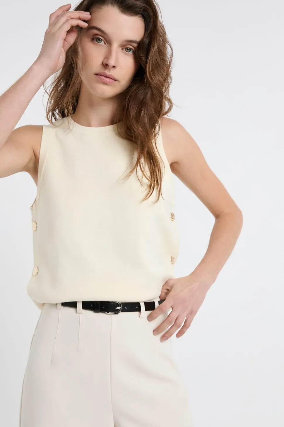 Top sin mangas de algodón con botones dorados