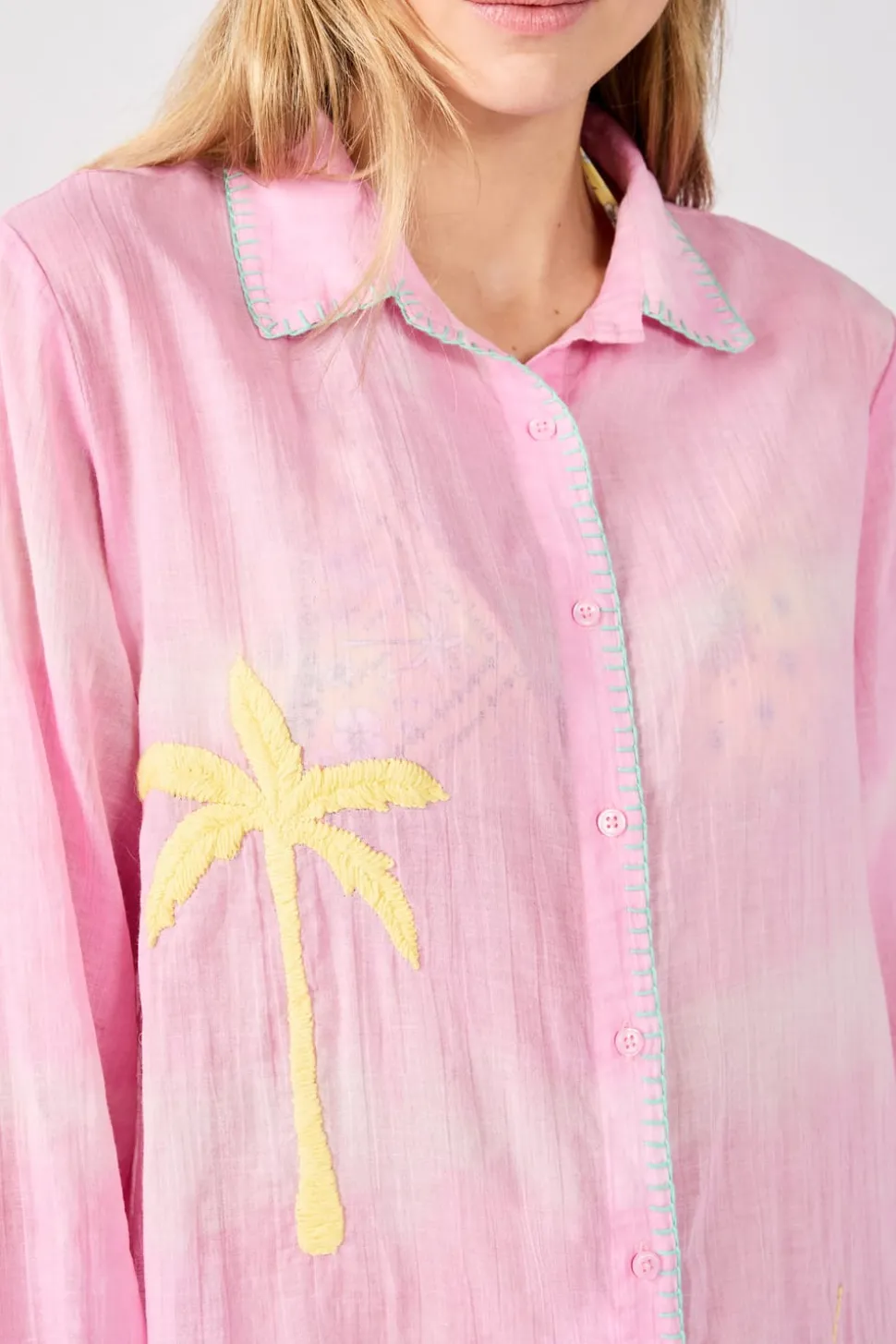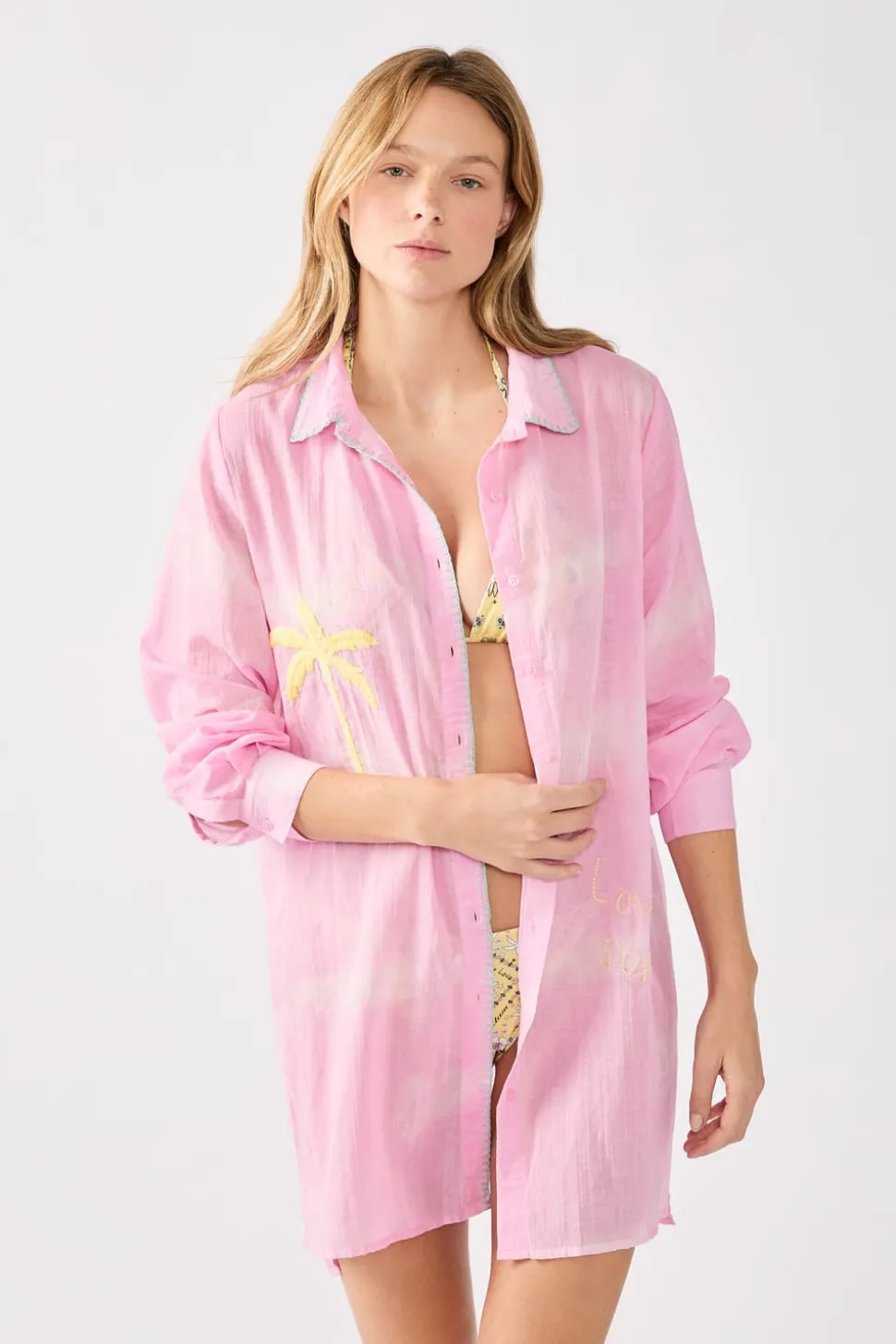 Vestido camisero de algodón bordado